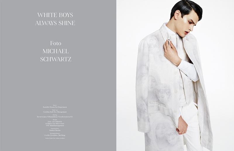 Back to White-After many editorials focused on vibrant and saturated spring colors, this new story, lensed by Michael Schwartz for Tush’s latest issue, seems like a breath of fresh air. The reason is quite simple, because the whole story is built around the non-color par excellence: white. Worn by VNY model Simon Van Meervenne, the all-white wardrobe he’s wearing, assembled by David Gomez-Villamediana, is an extra demonstration that even if it’s a classic and timeless shade, white can never get monotonous or predictable. / Hair by Danielle Priano. Makeup by Carolina Dalì.