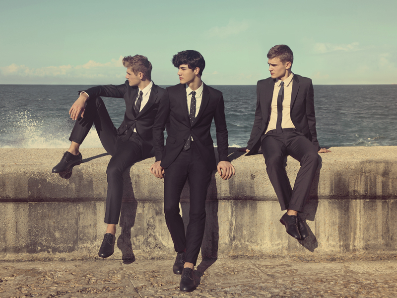 Postcards from Cuba–Photographer Greg Swales and stylist Joseph Episcopo head to Cuba to shoot T.I. for Men’s spring/summer 2013 campaign, starring models Simone Nobili, Bo Develius and Taras Koltun. Captured walking in the streets of Havana as young tourists or spending some time on the Cuban beaches, the boys showcase the brand’s latest offering, combining printed tees, lightweight knitwear pieces, classic chinos or more casual Bermuda shorts with the brand’s more formal and refined suggestions, like the timeless two-piece black suit or the more playful deconstructed jackets available in a lively palette of shades, which includes dusty hues, sorbet tones or nature-inspired nuances.
