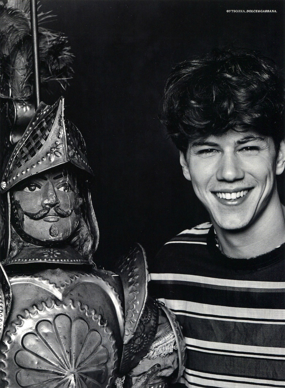 A Sicilian Tale–Working both as photographer and stylist, Natalia Alaverdian captures models Simone Nobili (Independent Men) and Elbio Bonsaglio (L’Uomo Elite) for a Dolce & Gabbana themed spread published in the March 2013 issue of Harper’s Bazaar Russia. Joined by the brand’s favorite female face, Italian model Bianca Balti, the boys showcase the Sicilian inspired collection designed for the spring season, posing for an almost theatrical series of images. / Hair by Gabriele Trezzi. Makeup by Andrea Costa.