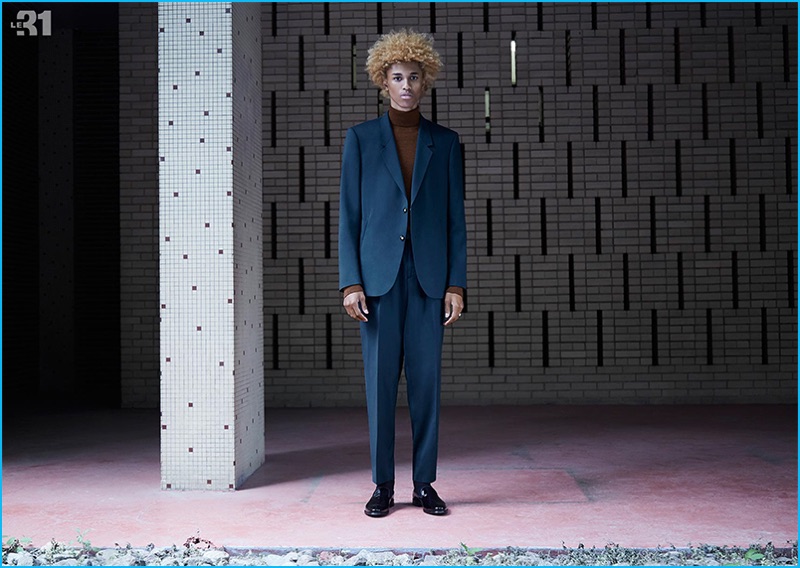Suiting up in LE 31, Michael Lockley is striking in blue for Simons' Modern Retro lookbook.Pin