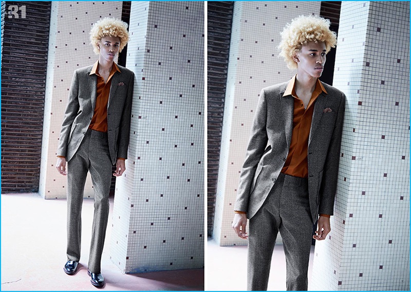 Suiting up in LE 31, Michael Lockley is striking in blue for Simons’ Modern Retro lookbook.