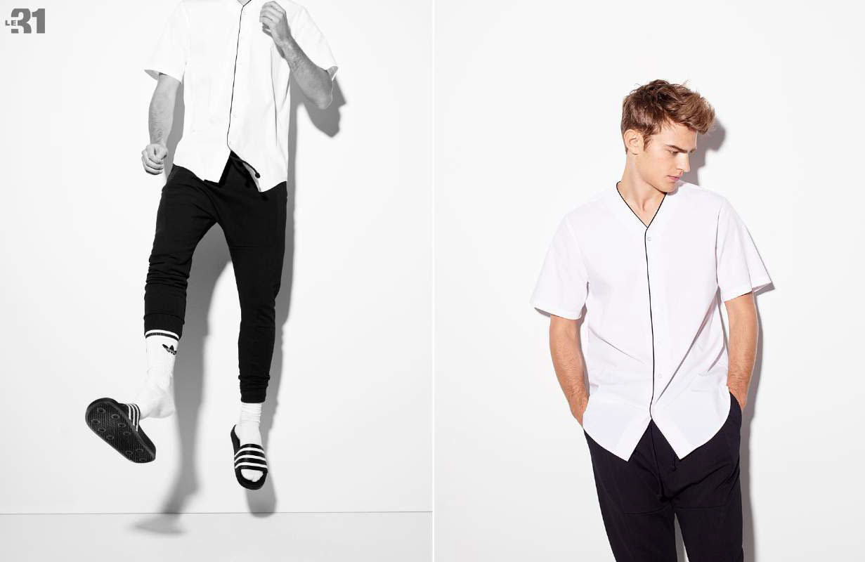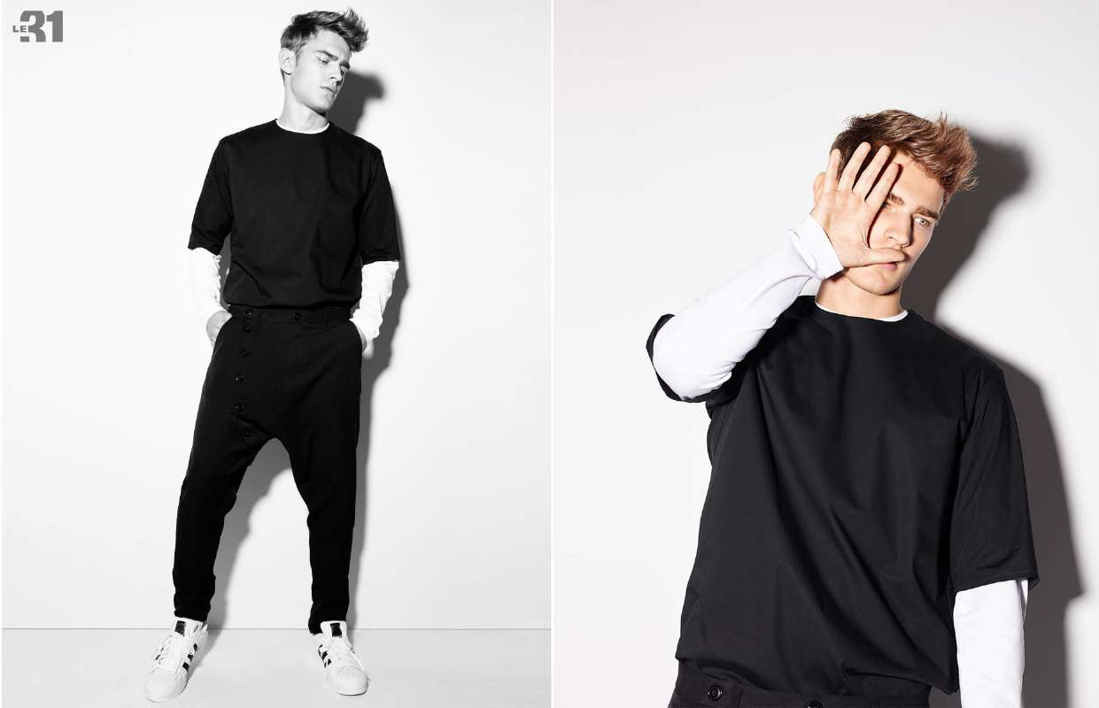 Simons hones in on the 90s style trend with a stylish fashion shoot, showcasing its latest products. The retailer calls on Swedish model Bo Develius to sport choice pieces for the occasion. Embracing a color palette of black, grey and white, Bo is front and center in a laid-back wardrobe. Evoking a sporty aesthetic, Calvin Klein Jeans items are juxtaposed with other essentials from brands such as Adidas.