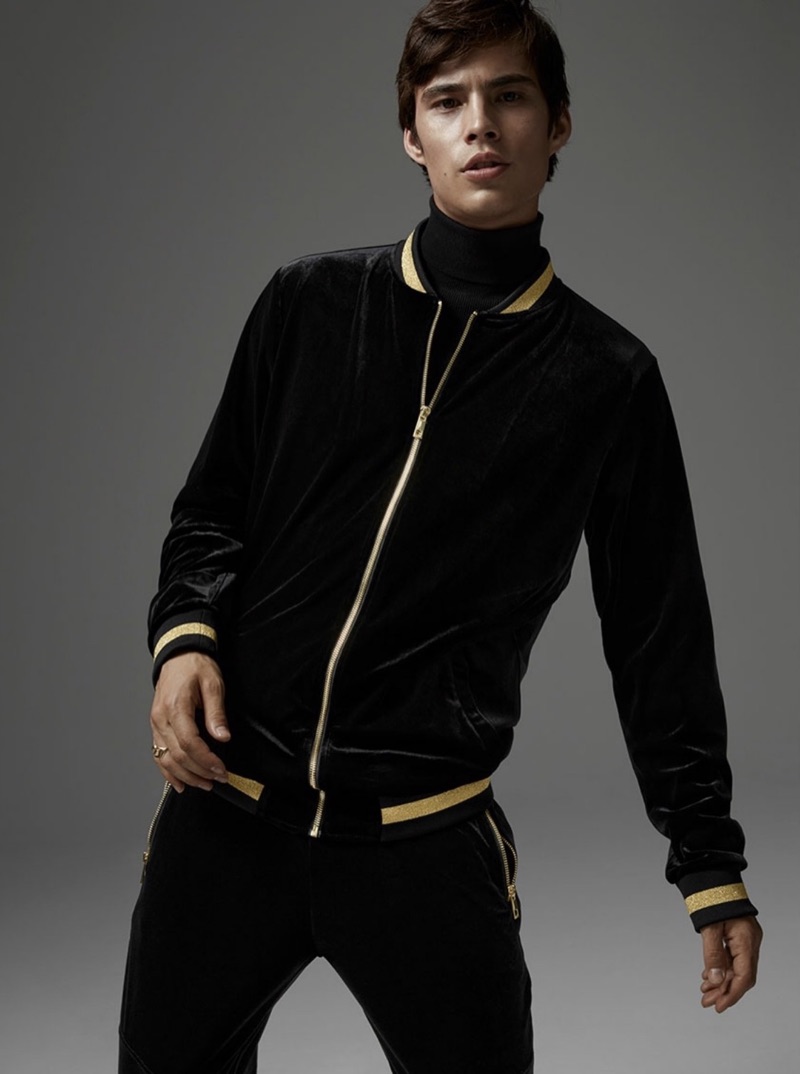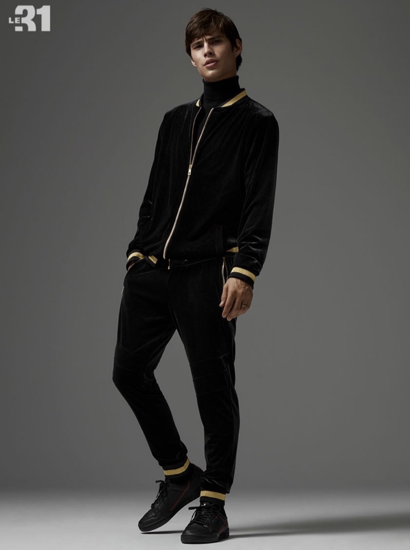 Going sporty, Louis Baines dons a LE 31 neo baroque tracksuit.