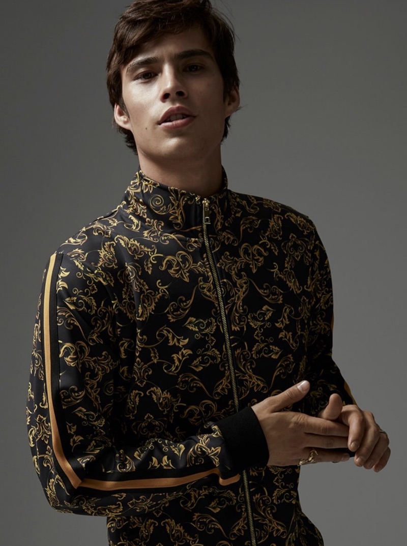 Going sporty, Louis Baines dons a LE 31 neo baroque tracksuit.Pin