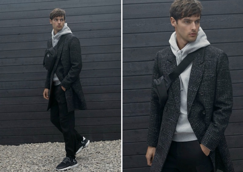 Hannes Gobeyn ventures outdoors as he links up with Simons for its fall-winter 2019 outerwear campaign. Making a stylish impression, Hannes dons a number of coats from LE 31. The selection includes the line’s range of recycled wool coats that both provide warmth and an environmental appeal. Combatting the cold, a number of Canadian brands are front and center as well. Taking in a cold winter scene, Hannes wears labels like Canada Goose, Moose Knuckles, and Quartz Co.