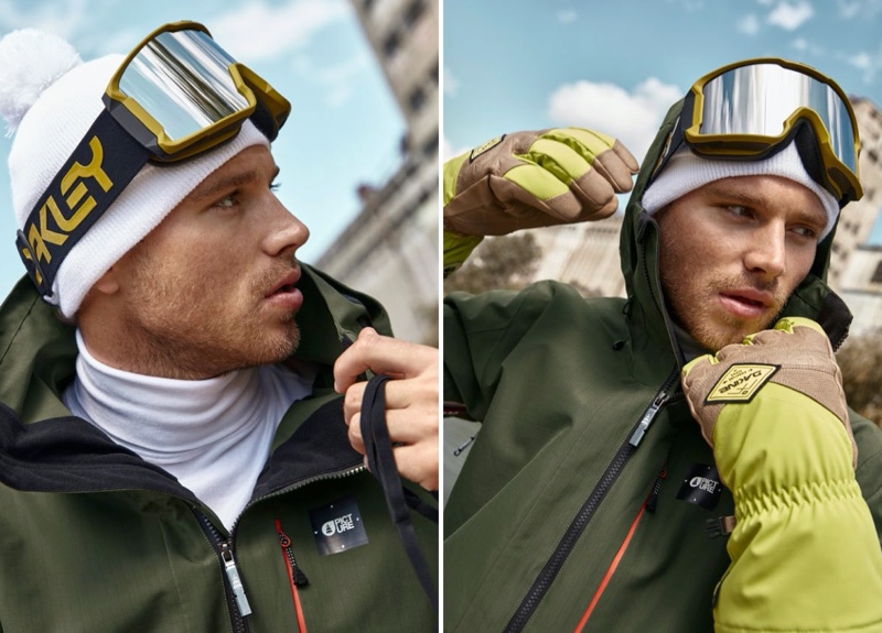 Matthew Noszka embraces a flair for the outdoors as he reunites with Simons. The 27-year-old model tackles style for the season with a focus on skiing and snowboarding. Embracing active men’s clothing, Matthew dons Simons’ well-rounded offering. He keeps warm in anoraks, puffer coats, snow pants, and more. Matthew’s wardrobe includes the latest from varied brands, which include The North Face, Oakley, and Fire + Ice.
