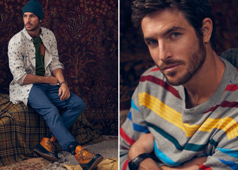 Justice Joslin is in the spotlight once more for Simons. After a festive holiday campaign, Justice inspires in a varied mix of winter styles. Taking to a set decorated in ornate rugs, Justice models Simons’ latest offering from LE 31. Both smart and trendy fashions come together with an array of knitwear, distressed denim, shirts, and chinos. The selection comes together in neutral hues with pops of color, courtesy of shades like yellow.