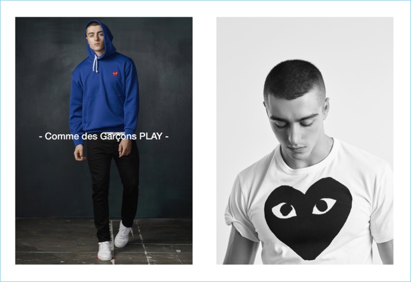 Simons releases its biannual designer men’s lookbook and doesn’t miss a beat. The Canadian retailer taps model Andrés Sanjuan to front the outing. Taking to a photo studio for a mix of full body images and portraits, Andrés links up with photographer Mei Tao. The Spanish model embraces eclectic style as he warms up to a diverse array of labels. Wearing the likes of Vivienne Westwood and AMI, Andrés embraces everything from tailoring to casual and sporty.
