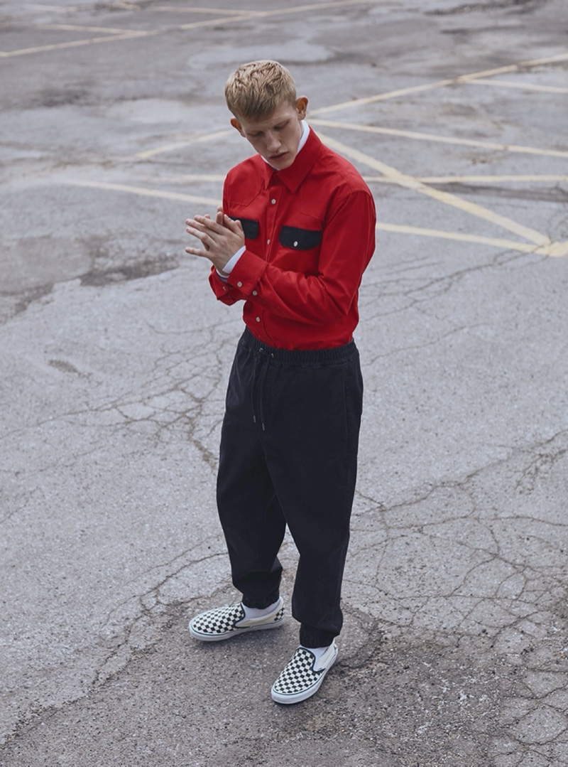 Simons highlights throwback fashions from its fall 2019 offering for DJAB and more. Models Connor Newall and Ben Overthrow come together for the occasion. The pair heads outdoors in streetwear-inspired looks. Bold colors burst forth with oversized tees, striped sweaters, and color block shirting. Relaxed fits and a mixing of colors contribute to a youthful spirit. Meanwhile, accessories from labels like The North Face add a certain sportiness.