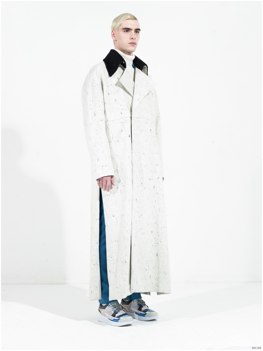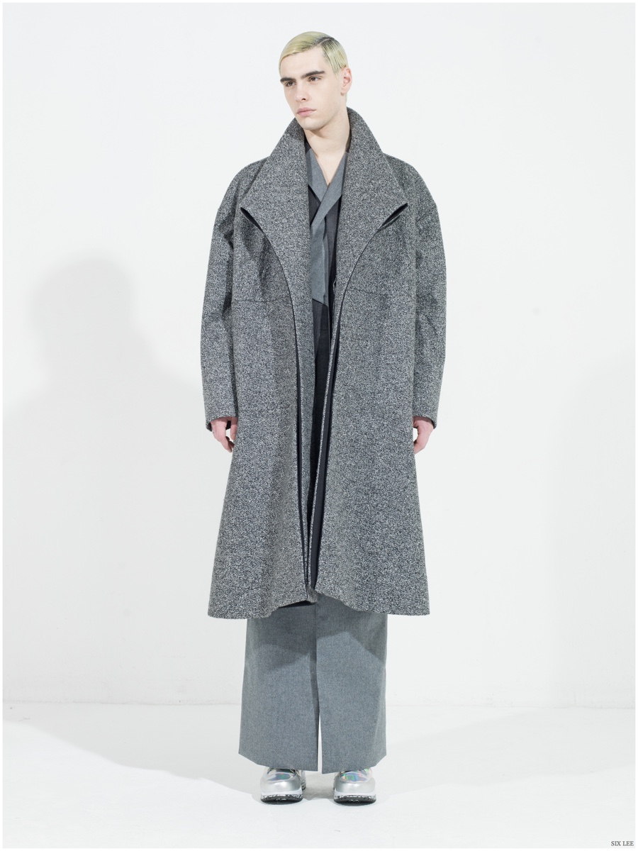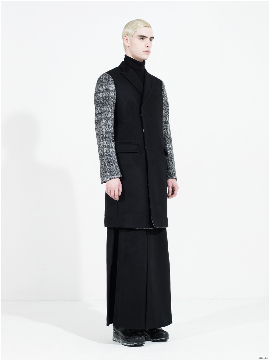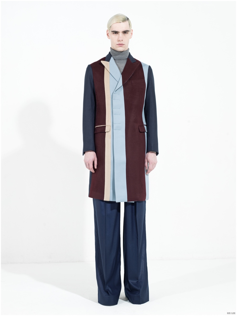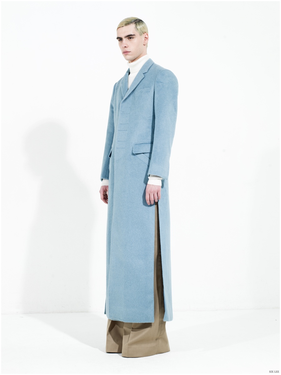 Six Lee presents its fall-winter 2015 menswear collection with a lookbook featuring model Jonathan Bauer Hayden, shot by photographer Zeb Daemen. The new collection takes a sharp, modern turn as a variety of soft and somber colors come together. Seamlessly blending silhouettes, narrow proportions open themselves up to wide silhouettes, which feature flared trousers. / Grooming by Vera Dierckx.