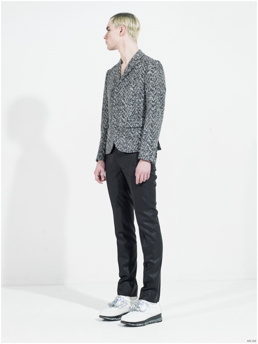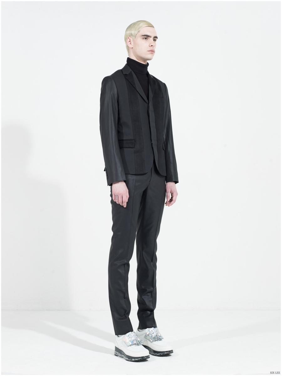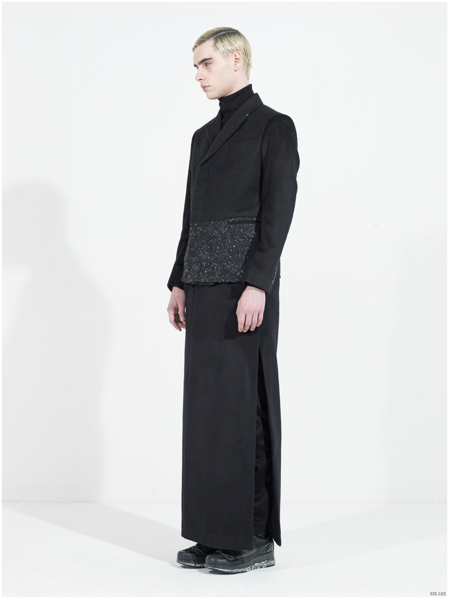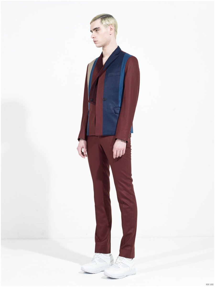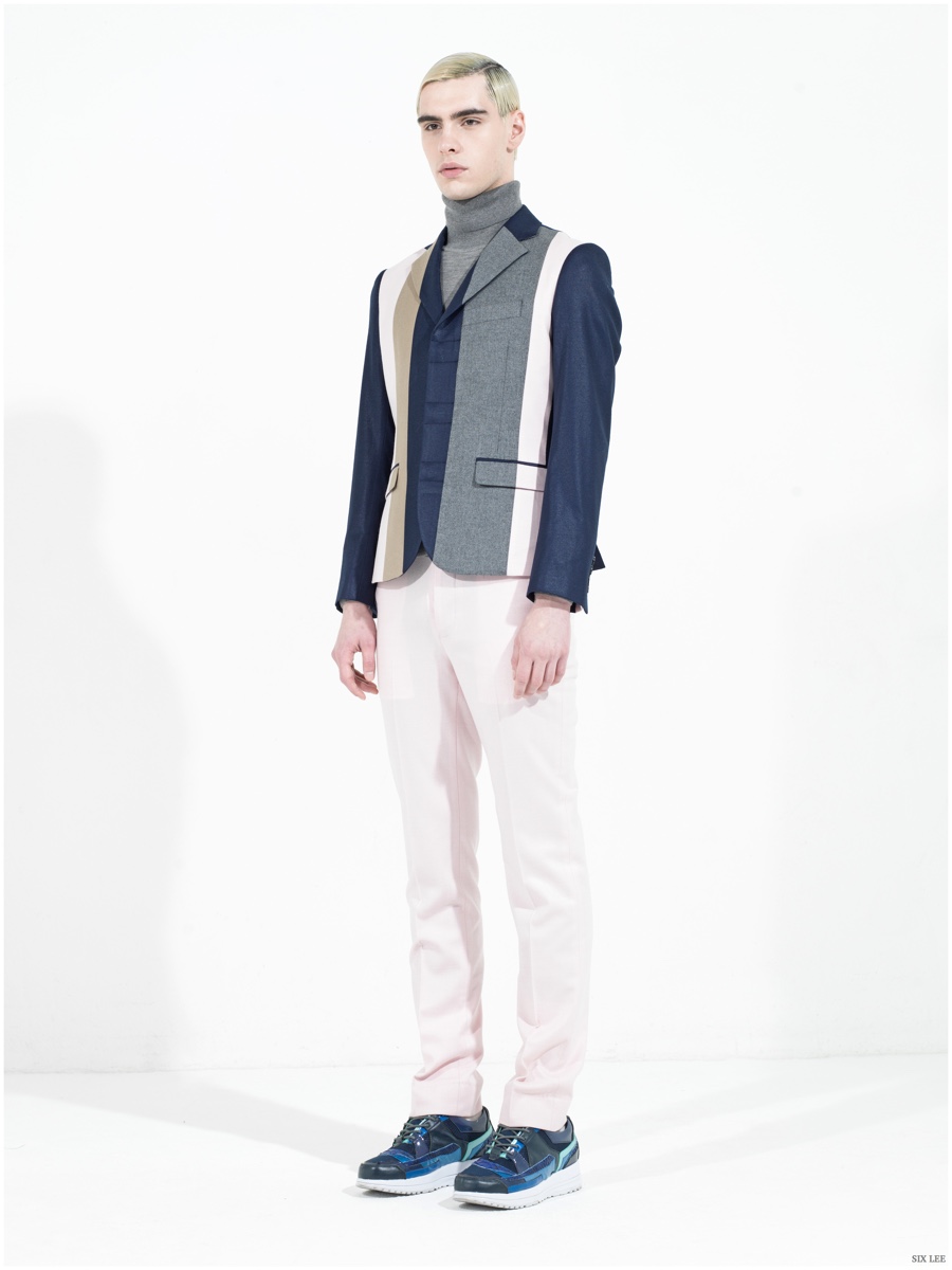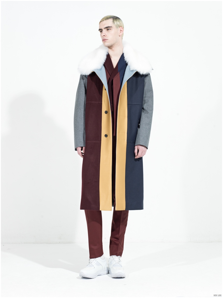 Six Lee presents its fall-winter 2015 menswear collection with a lookbook featuring model Jonathan Bauer Hayden, shot by photographer Zeb Daemen. The new collection takes a sharp, modern turn as a variety of soft and somber colors come together. Seamlessly blending silhouettes, narrow proportions open themselves up to wide silhouettes, which feature flared trousers. / Grooming by Vera Dierckx.