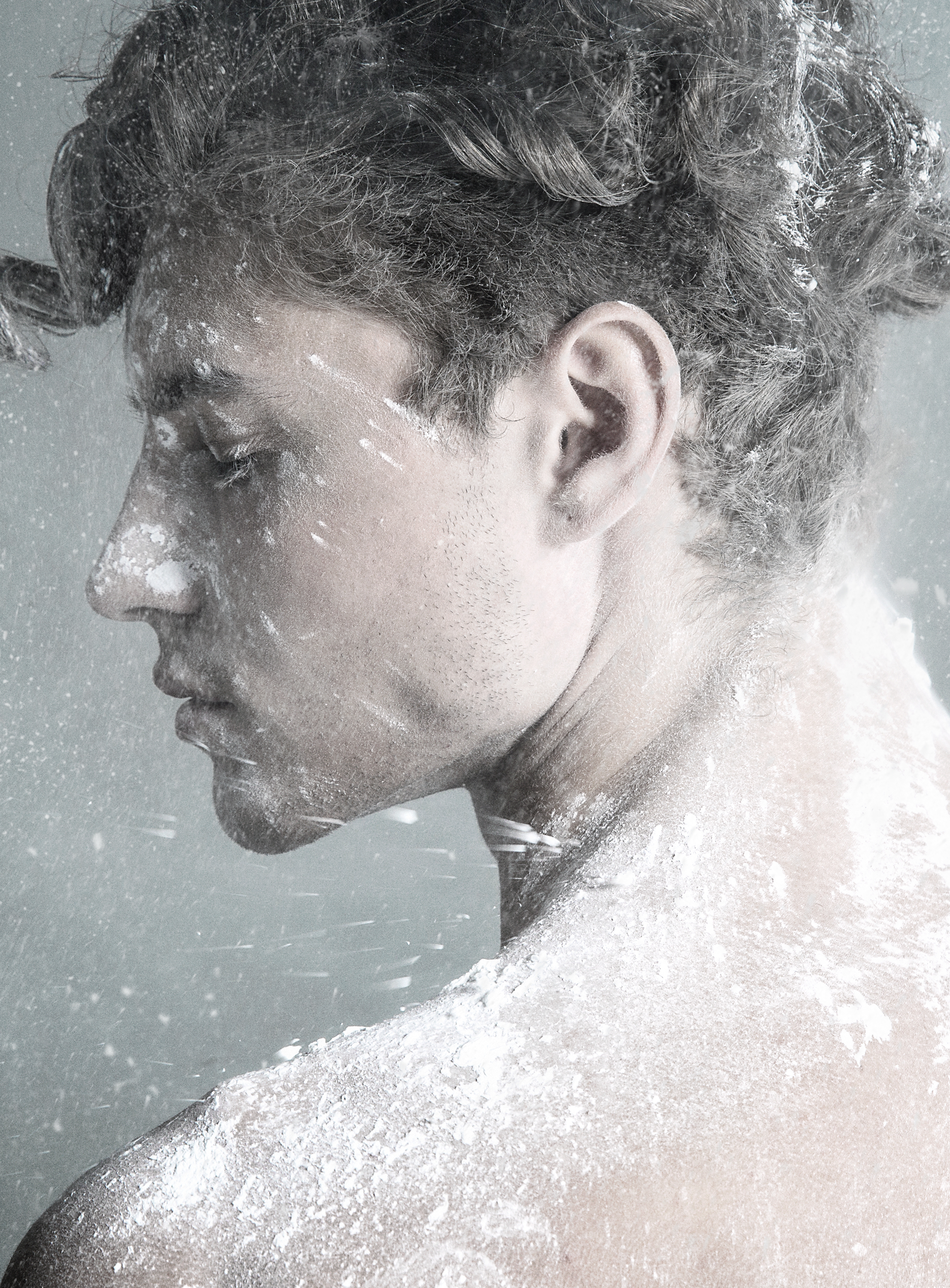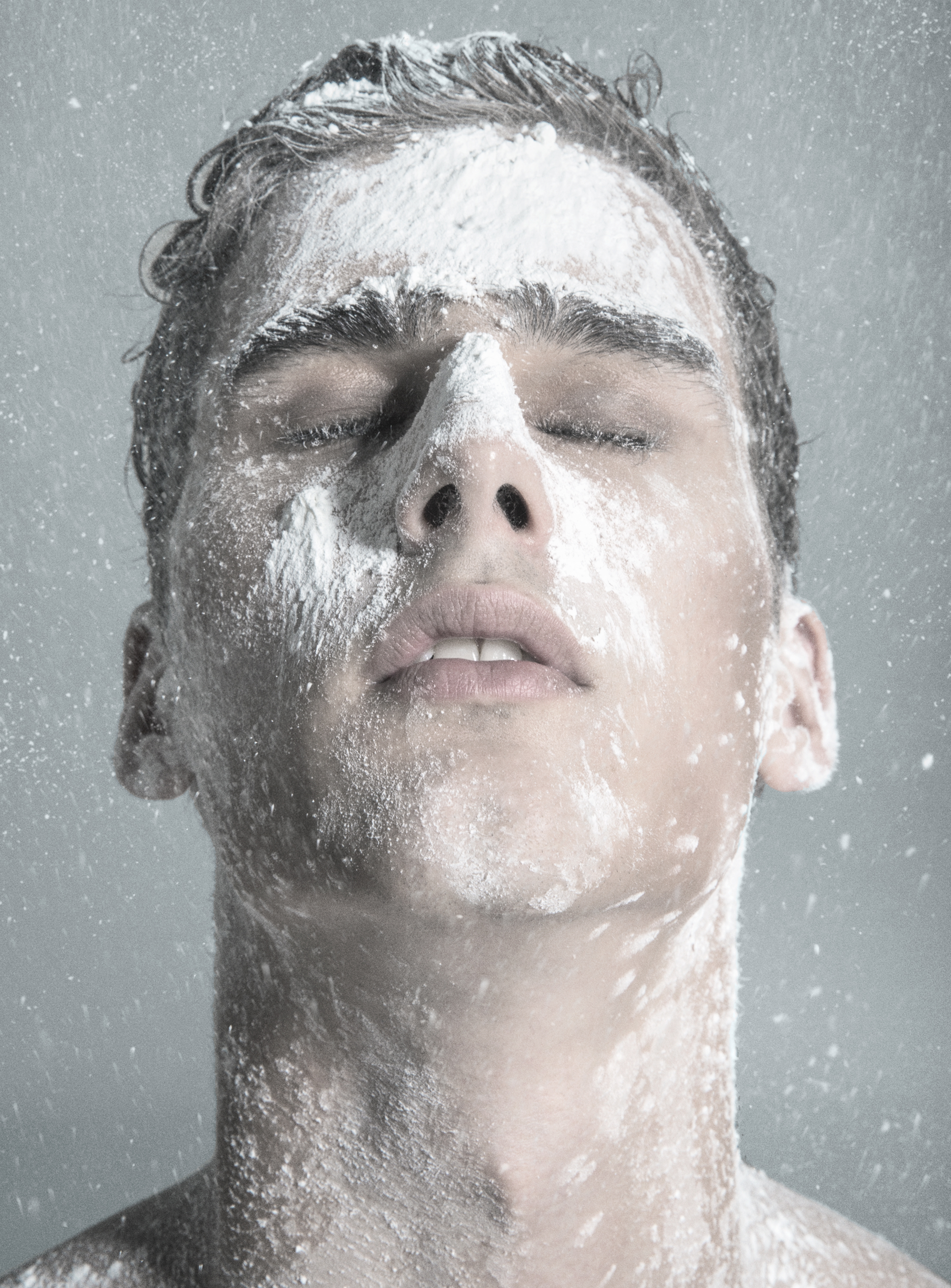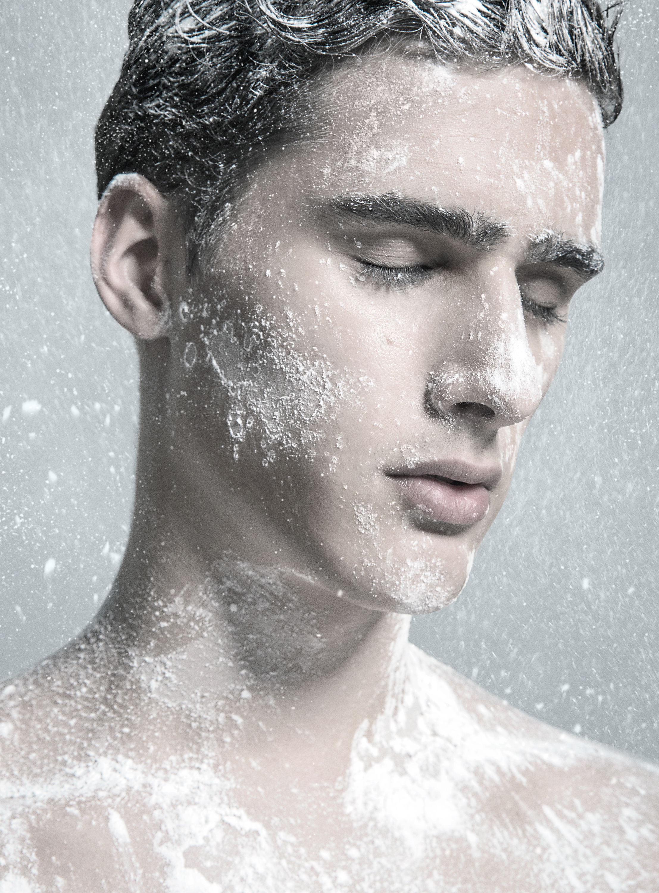 The Skin I Live In–M3 models Jedrek Pordzik and Konstantin Vasiliev come together for a new beauty story by photographer Ian Chiang. Posing for serene images, the striking pair are dusted with powder and groomed by artist Galina Yu for stunning results.
