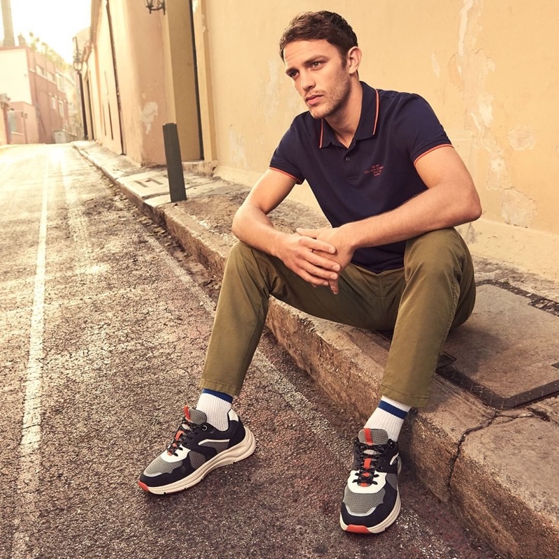 s.Oliver enlists Guillaume Babouin as the face of the season. The model and boxer pours on the charm as he showcases the brand’s fresh new styles. Skateboarding and hanging out on the city street, Guillaume inspires in casual fits that are ideal for everyday wear. His wardrobe includes everything from lightweight knitwear and distressed denim jeans to iconic menswear pieces such as the polo shirt. The selection comes together in a color palette of neutrals with the occasional pop of bright hues like yellow.