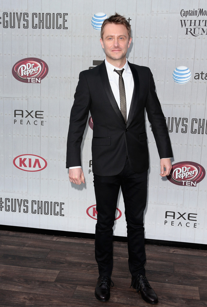 Actor Chris Hardwick hits the step and repeat with a slim-cut suit.Pin