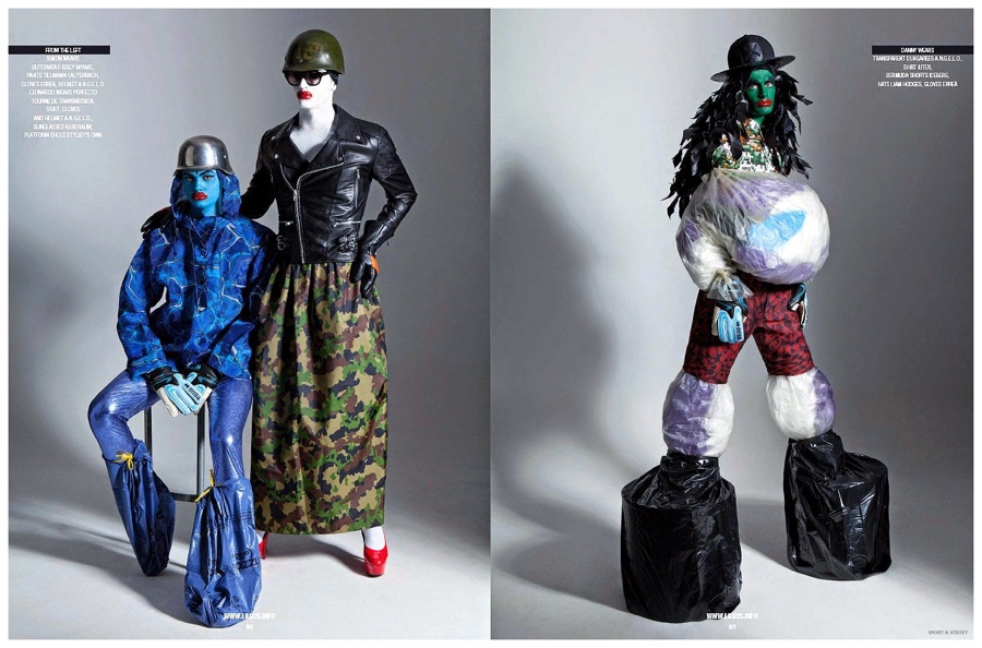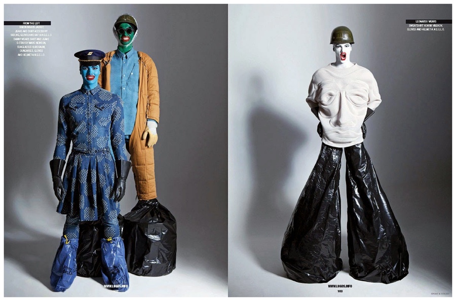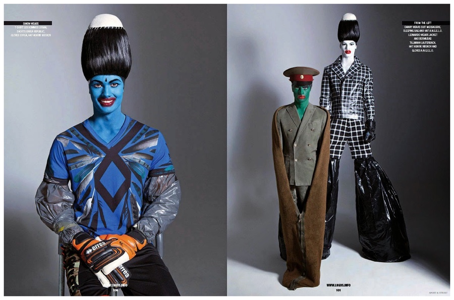 Photographer Michele De Andreis and stylist Alberto Caselli collaborate on the latest cover shoot from Sport & Street. Inspired by the late Australian artist Leigh Bowery, the story features models Danny Oliver, Leonardo Timis and Simon M (Independent Management) in eccentric fashions from Henrik Vibskov, Neil Barrett and more. / Grooming by Alessio Giovannelli. Photo assistance by Clara Melchiorre.