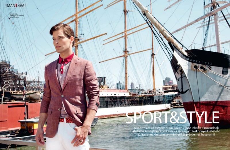 Sport & Style–Connecting with model Janos Molnar, photographer Eniko Szucs heads to the South Street Seaport for a shoot commissioned by Elle Man Hungary. Posing for relaxed images, Janos gets his spring fix with looks styled by Donovan Whyte. / Grooming by Victor Noble. Style assistance by Courtney Michelle.