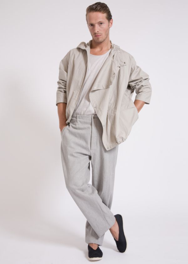 Dressed in a serene color palette of whites, creams and blues, Christophe Lemaire refines his minimalist vision for the spring season. Ushering in a close-fitted, yet relaxed range, Lemaire continues the fusion of Western and Chinese design ideas that see to the construction of simple functional pieces. Finally, by concealing select buttons and zippers, a sleek finish is maintained with overall silhouettes that are representative of the modern man who desires both chic styling and practicality.