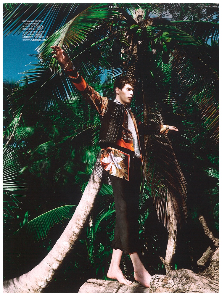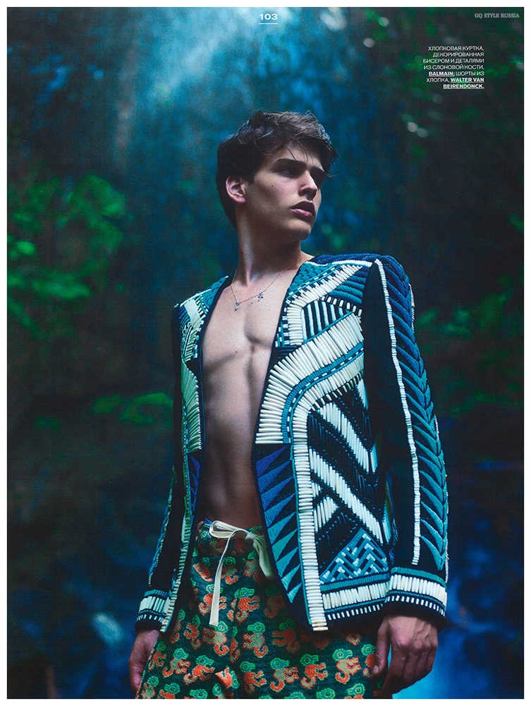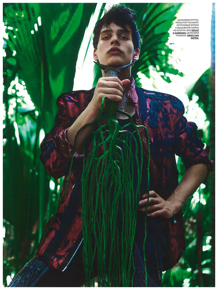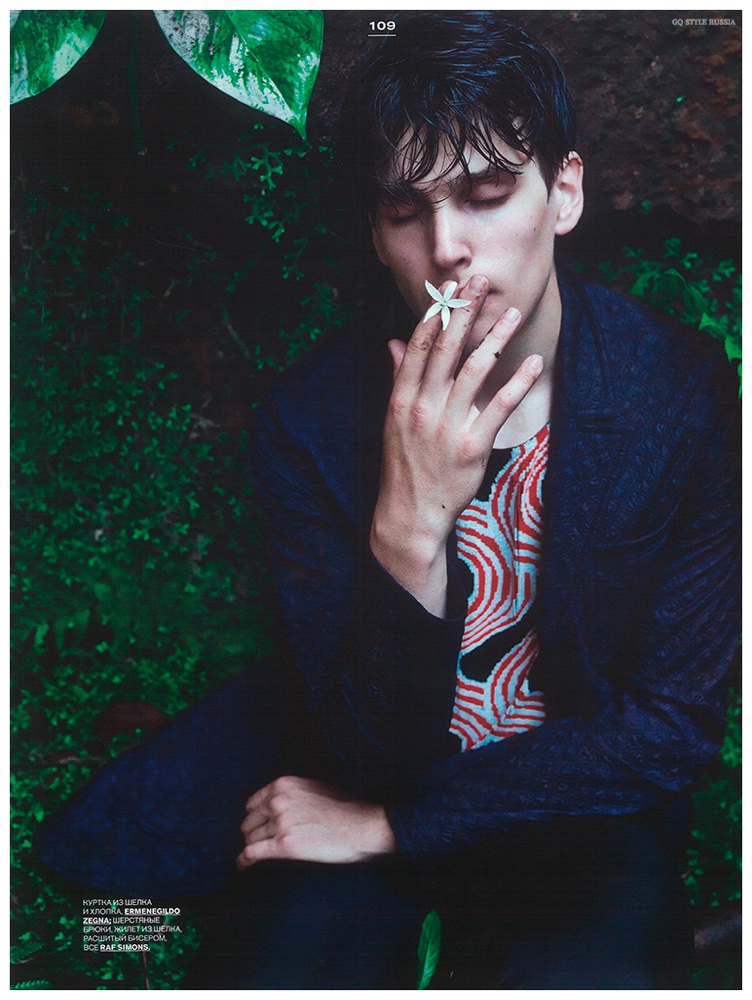 Following a cheeky fashion editorial shoot for GQ Russia, Ekaterina Melnikova connects with photographer Yin Chao for a decadent take on spring. Working with model Simon Van Meervenne, Melnikova styles a wardrobe of intricately printed and embellished pieces. Captured outdoors, Simon is an arresting vision as he models statement pieces from Dolce & Gabbana, Balmain, Ann Demeulemeester and more.