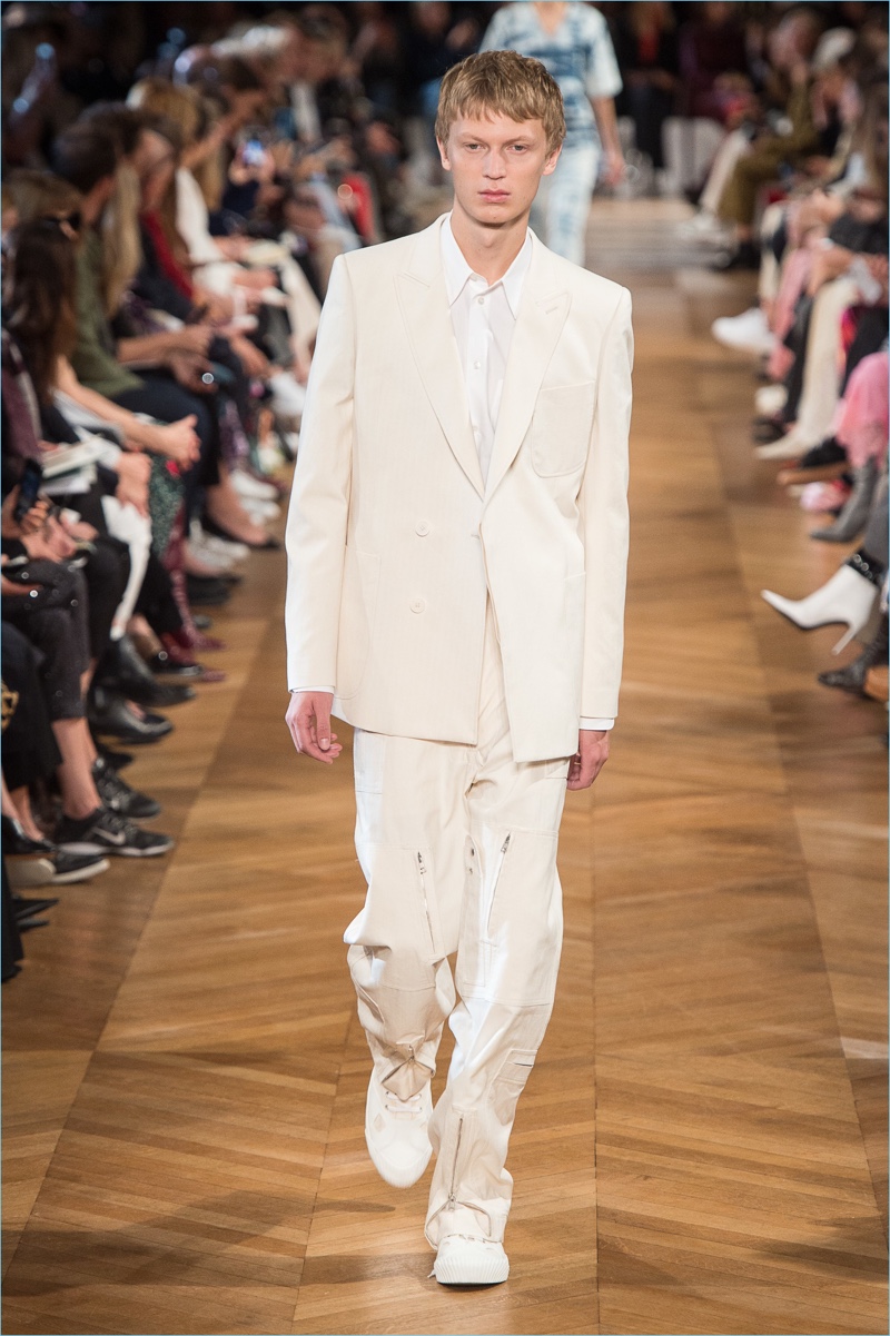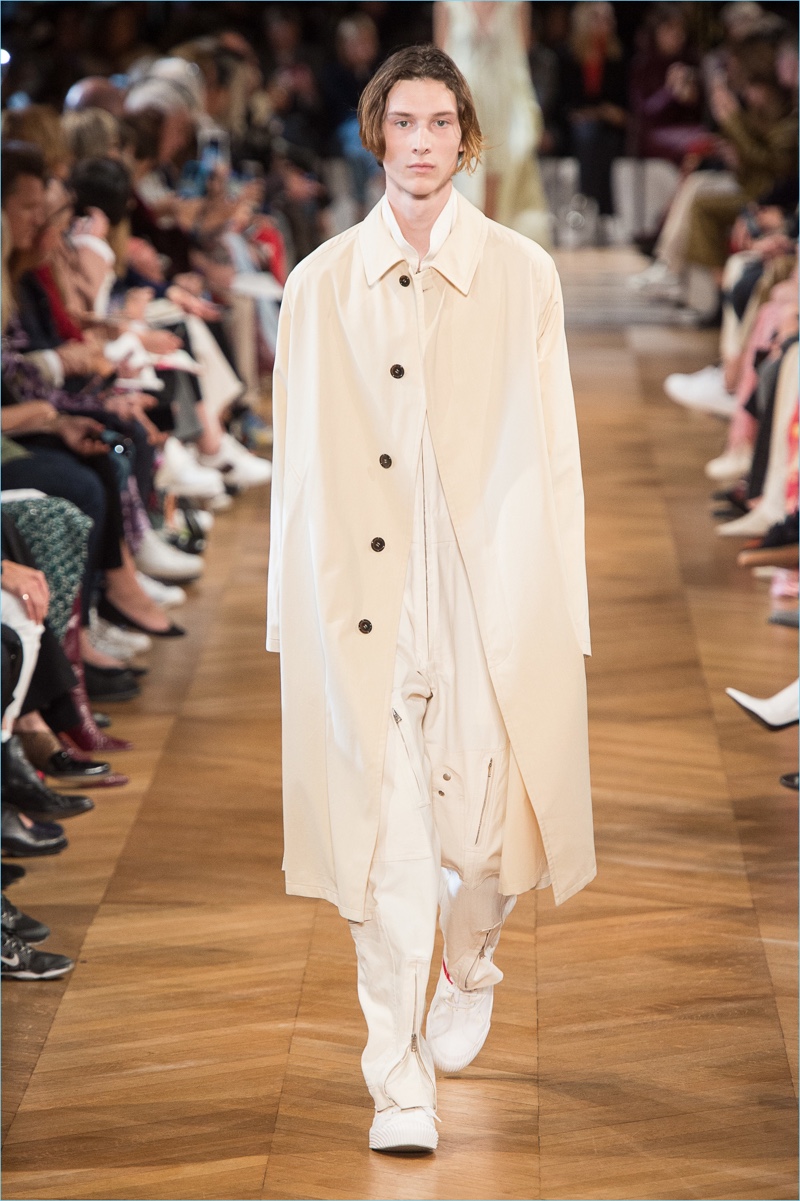 Stella McCartney’s spring-summer 2019 collection takes flight with a soft and airy attitude. Relaxed proportions reflect a calm demeanor for McCartney’s man this season. Neutrals convey effortless sentiments as menswear icons receive carefree loose silhouettes. Meanwhile, McCartney mixes and matches natural hues for endless inspiration. Key takeaways from the collection range from chic trench coats and cargo trousers to boxy tops.