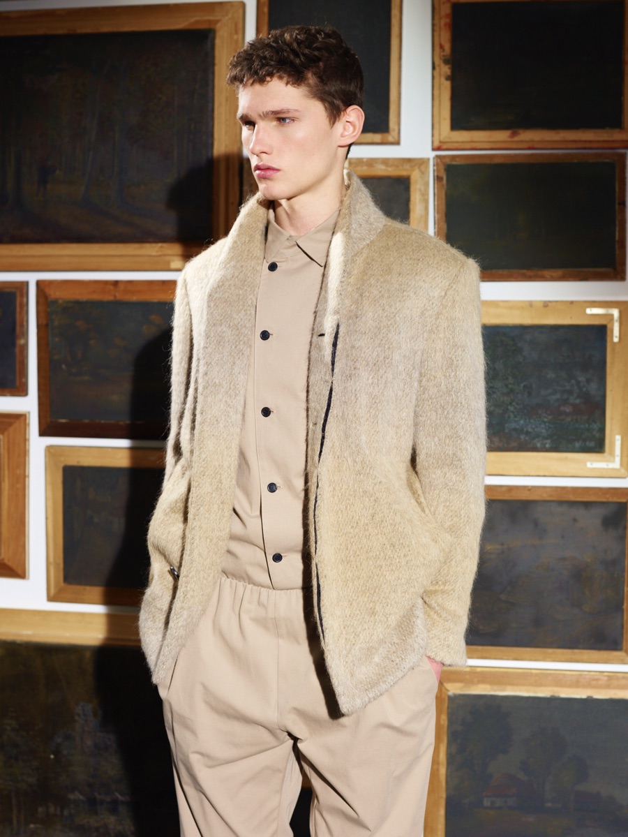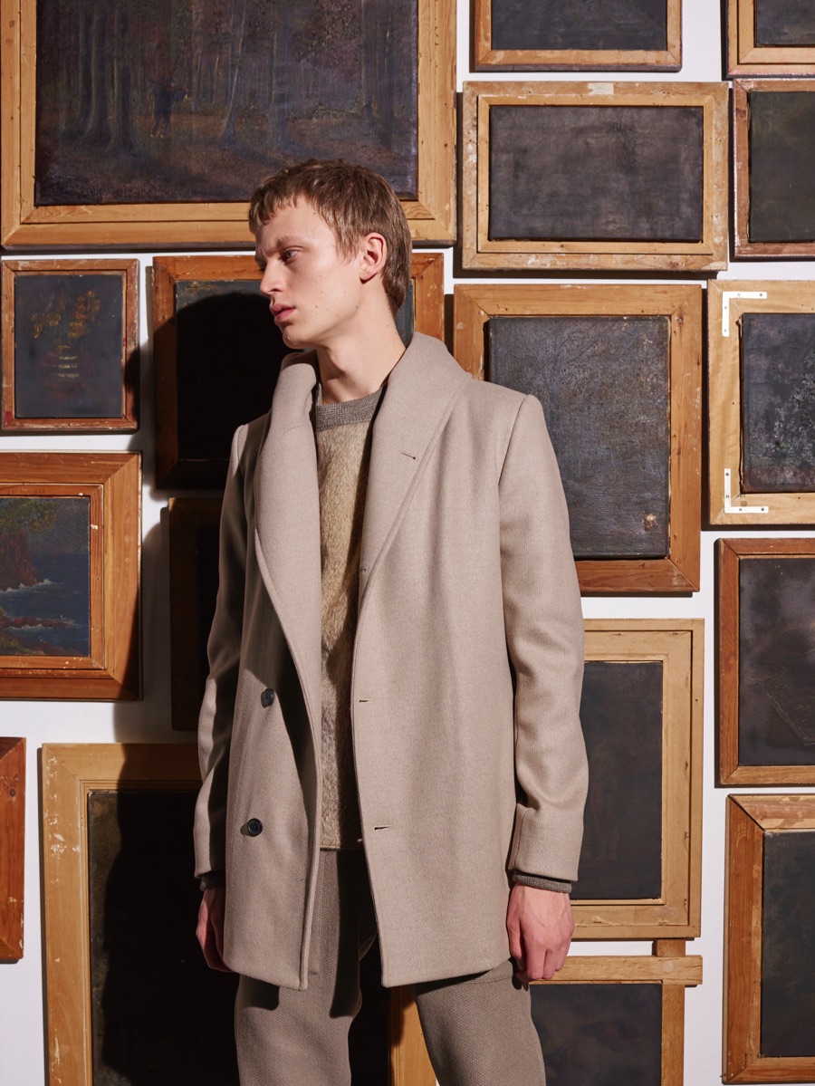 Oil paintings depicting picturesque landscapes and remarkable still life act as reference points for the well-rounded outing. Among smart separates, a tapestry of fabrics comes to life with checked tweed, striped knits and luxurious mohair. Spotlighting must-haves such as a painters atelier shirt or a collectors coat and trompe l’oeil cardigan, Schneider delivers a timeless charm.