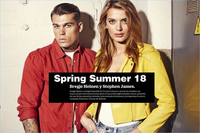 Stephen James is back in the spotlight as he stars in a new campaign. The British model links up with Refresh for its spring-summer 2018 campaign. Sporting the label’s latest footwear, Stephen joins Victoria’s Secret Angel Bregje Heinen. Stepping into Refresh’s stylish world, Stephen embraces a laid-back attitude. He sports distressed denim and other casual fashions to accent Refresh’s shoes. Front and center, Stephen rocks contemporary sneakers.