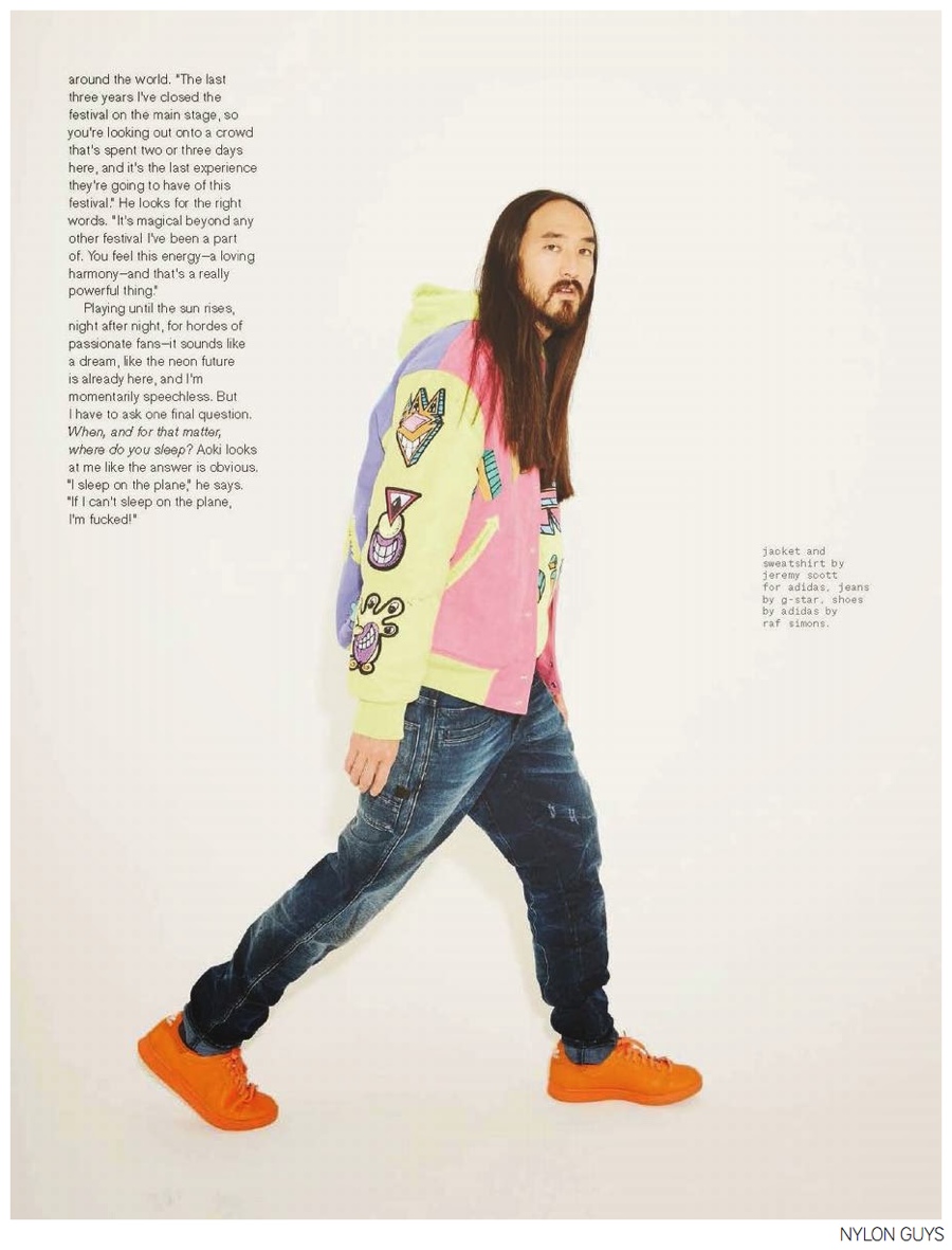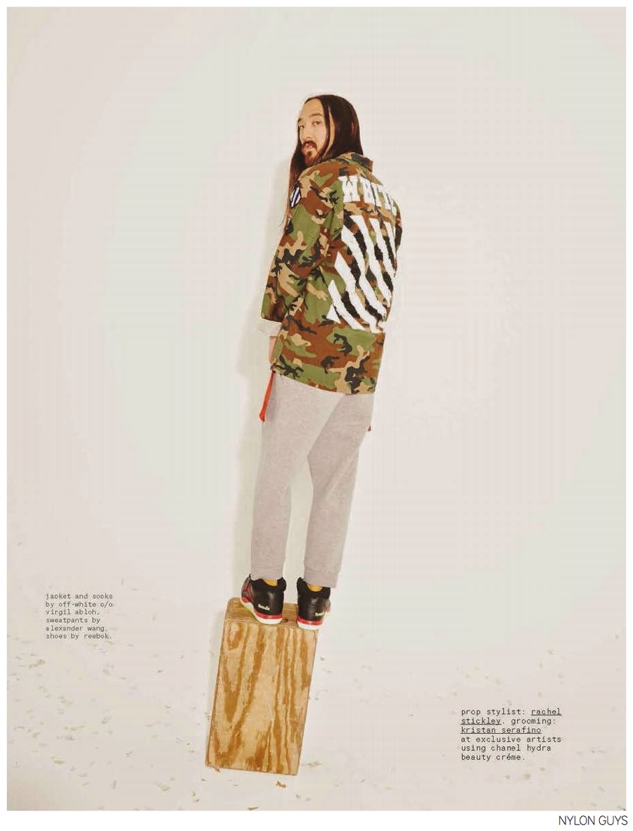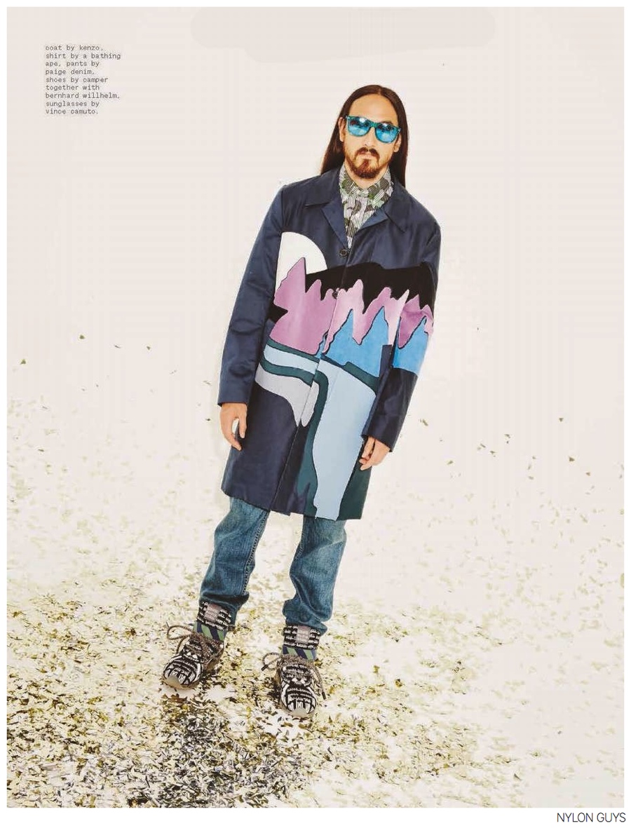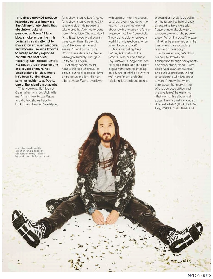 Sonic Boom-Music producer and DJ Steve Aoki delivers personality in spades for a November 2014 photo shoot in Nylon Guys. Hitting the studio with photographer Ben Rayner, Aoki is on fire in fun, fearless fashions. Styled by Javon Drake, Aoki is dressed in pieces from Marc by Marc Jacobs, Burberry Prorsum, Vince Camuto and more.