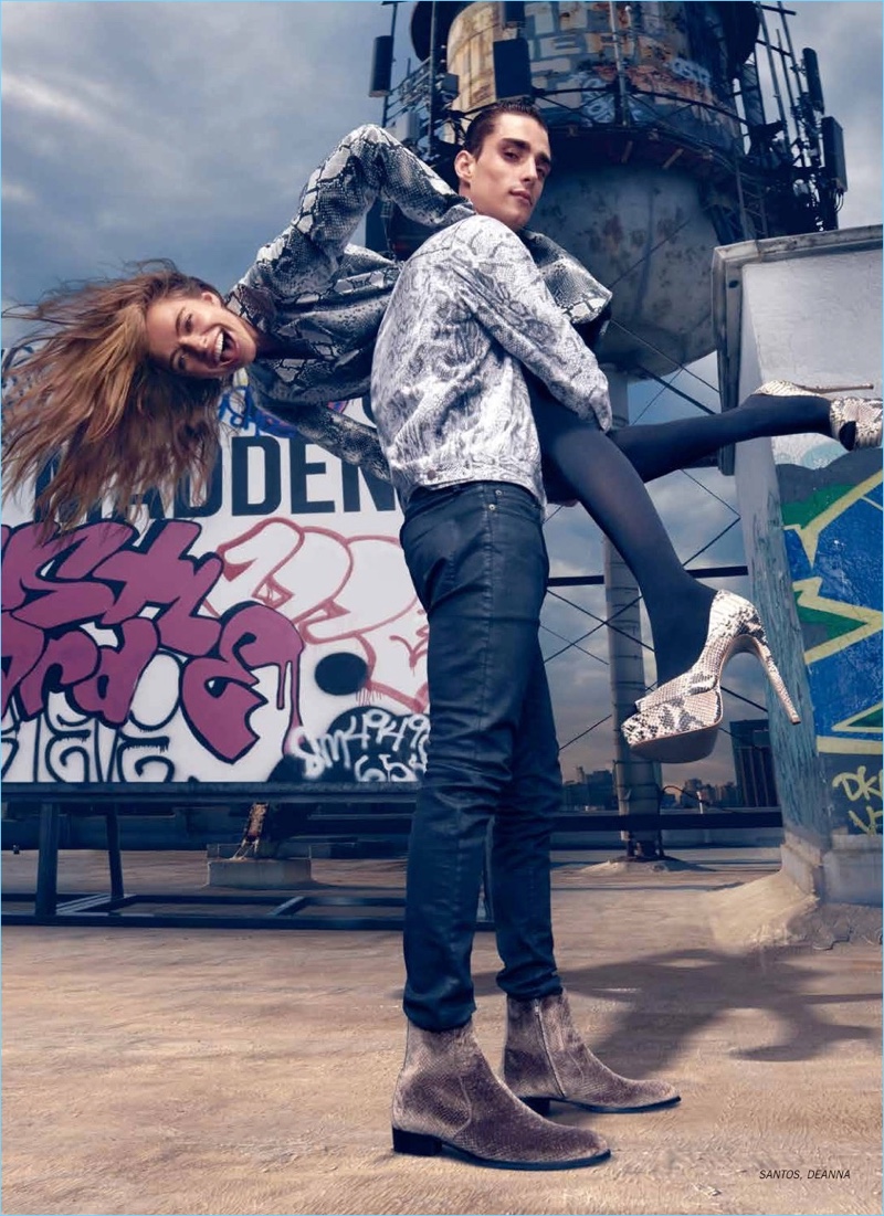Models Kane Roberts and Charlene Almarvez come together for Steve Madden’s fall-winter 2018 campaign.
