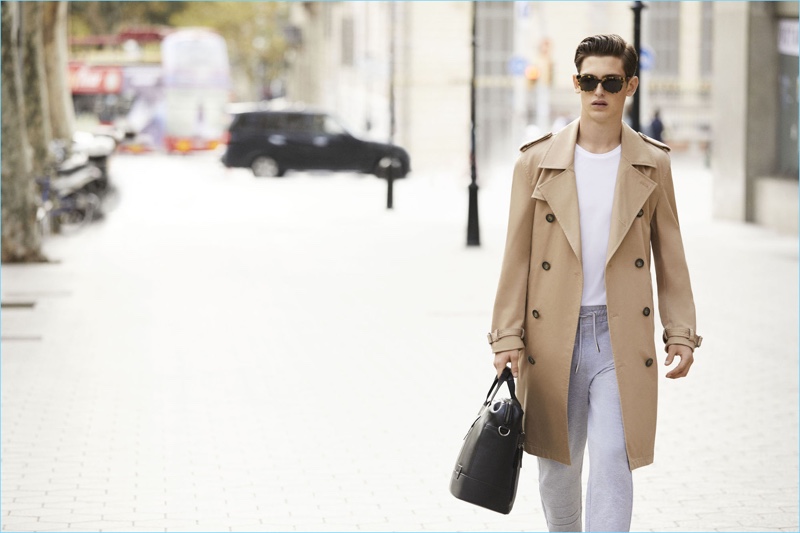 Bringing a stylish energy, whether in suits or casual staples like joggers, model James Manley is the face of the season. Pasquale Abbattista photographs the carefree outing.