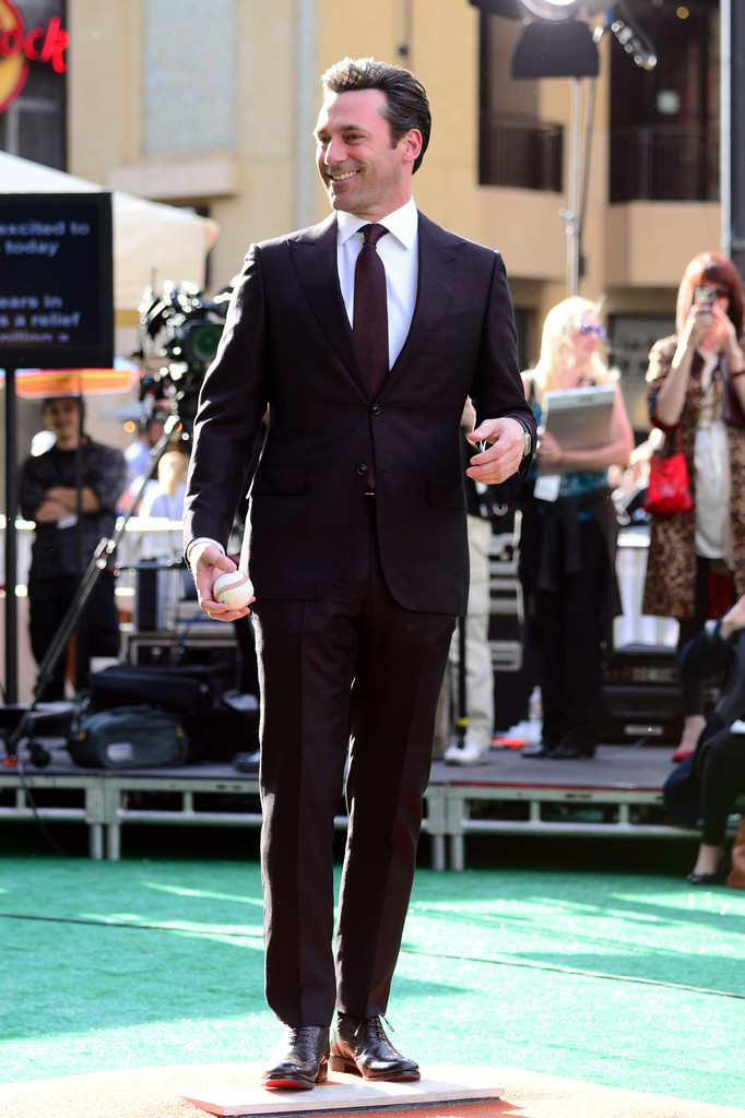 PinJon Hamm wears a tailored two-button suit from Ermenegildo Zegna to Disney’s ‘Million Dollar Arm’ at the El Capitan Theatre on May 6, 2014 in Hollywood, California.