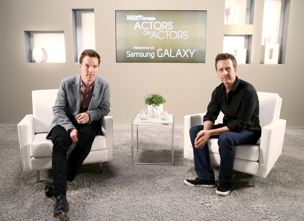 PinJoined by actress Keira Knightley at The Weinstein Company’s ‘The Imitation Game’ brunch, Benedict Cumberbatch stole the show in a burgundy layered tweed blazer from the fall-winter 2014 collection of Casely-Hayford.PinSitting down for an interview for ‘Variety Studio: Actors on Actors’ on November 8th, Benedict Cumberbatch joined actor Edward norton. Keeping it smart but casual, Cumberbatch paired a gray sports coat with a button-down and black trousers.