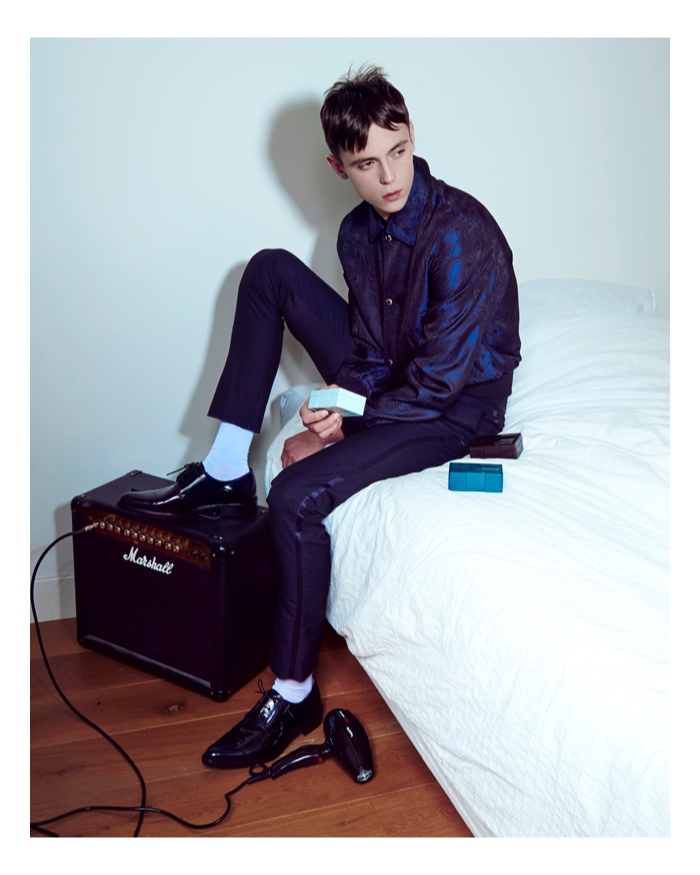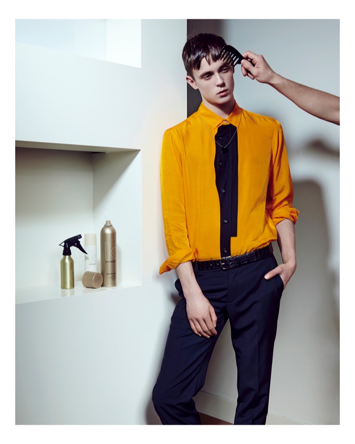 Subject of Beauty–Brooks model up and comer Gustaaf Wassink graces the pages of Prestage magazine’s latest issue with a charming beauty story lensed by photographer Jasper Abels (House of Orange). Outfitted by stylist Maaike Staal (House of Orange), Gustaaf dons nonchalant fashions with a cheeky attitude as he is captured around luxe grooming products. / Makeup by Lisselotte Saarloos (Eric Elenbaas). Hair by Daan Kneppers (NCL Representation).