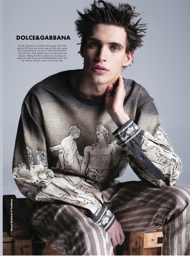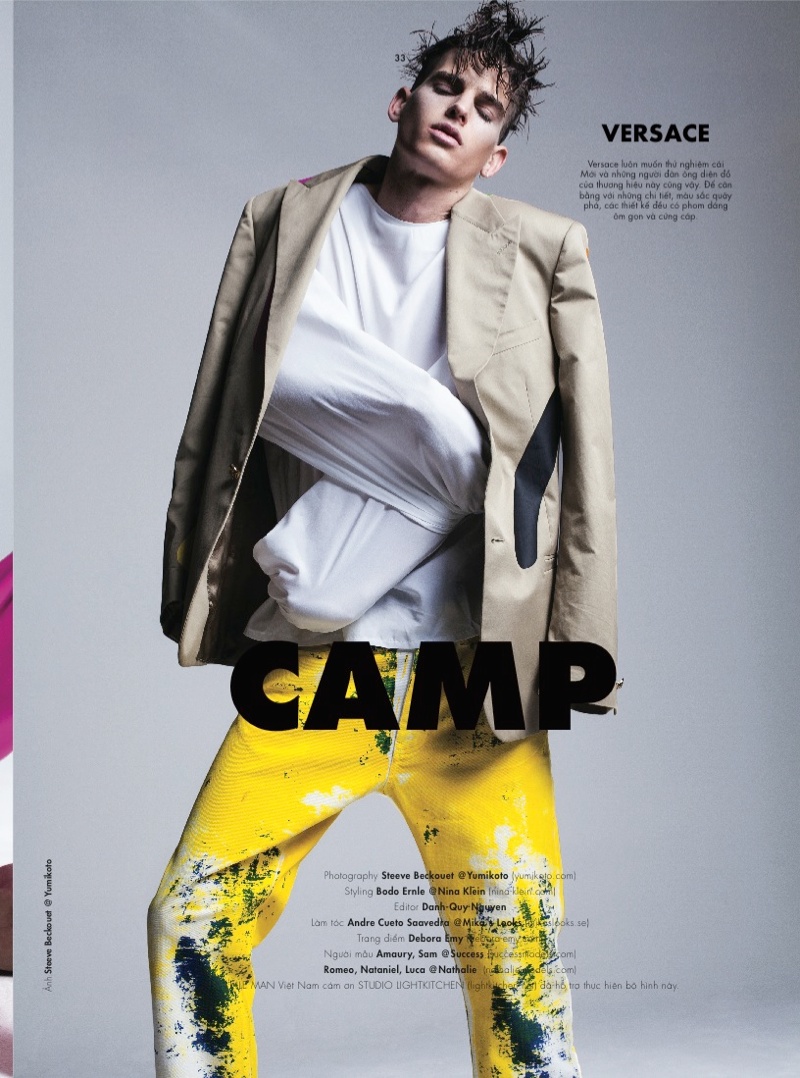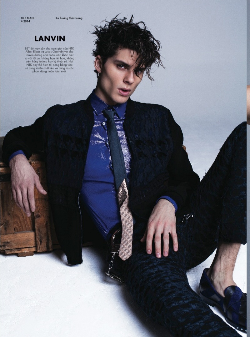 Summer Camp–Photographer Steeve Beckouet captures a charming new story for the April edition of Elle Man Vietnam. Honing in on designer looks from the spring/summer 2014 collections, Beckouet captures models Lucas Valerdi, Romeo Caminos, Nathaniel Rooklyn (Elite Paris), Amaury Baudoin and Sam Maouchi. Sporting eccentric hair dos, the boys steal the moment in strong ensembles styled by Bodo Ernle (