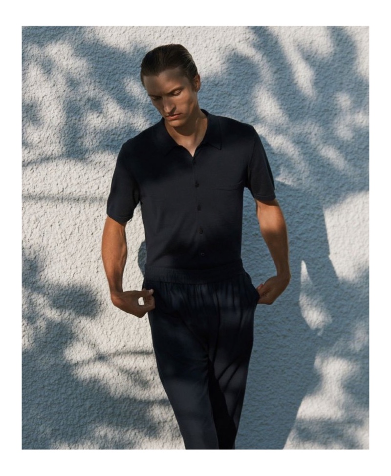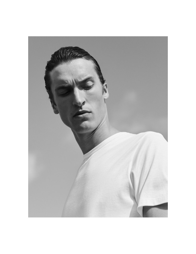 Sporting Sunspel's chic basics, Tim Dibble fronts the brand's spring-summer 2020 campaign.Pin