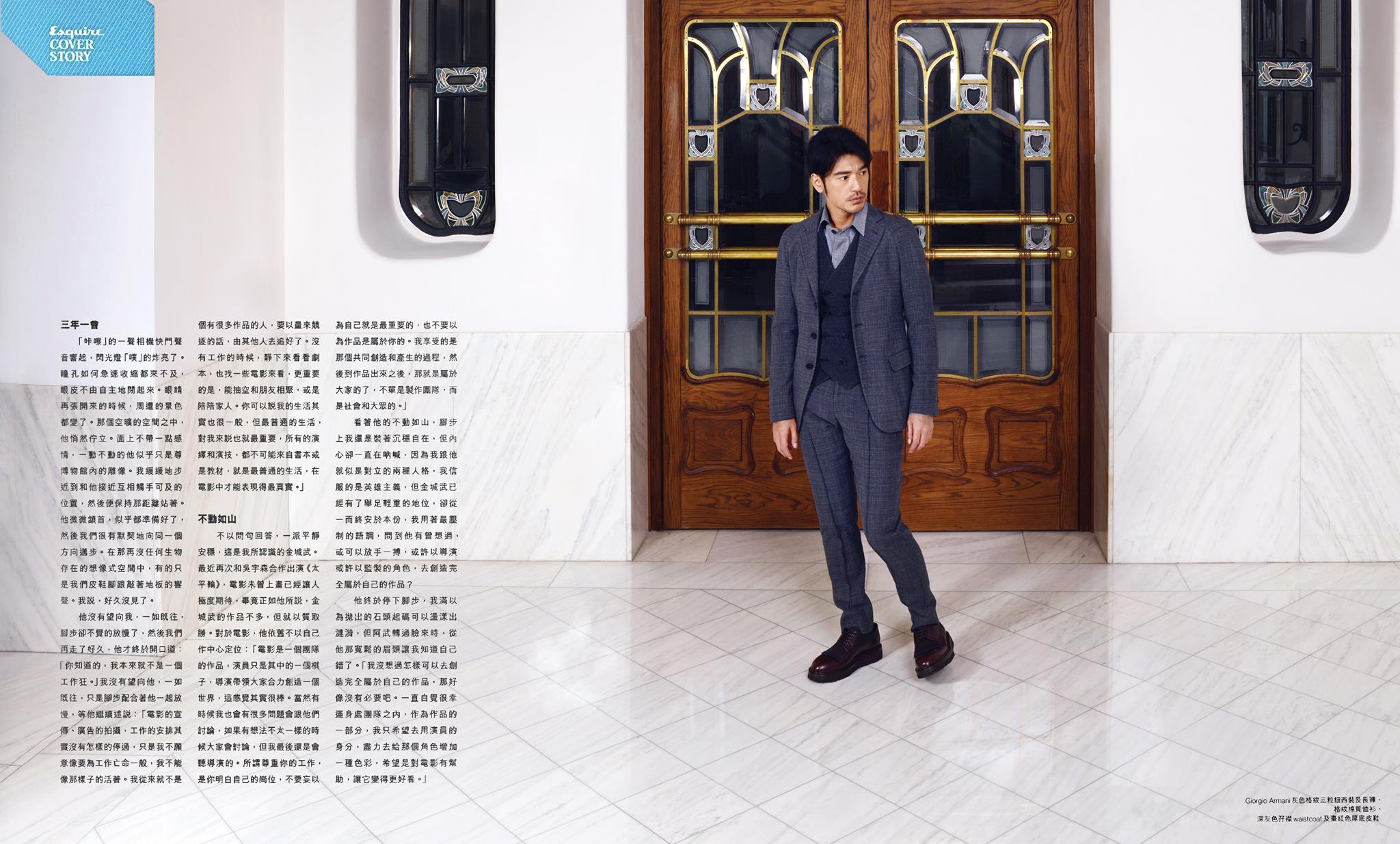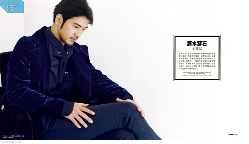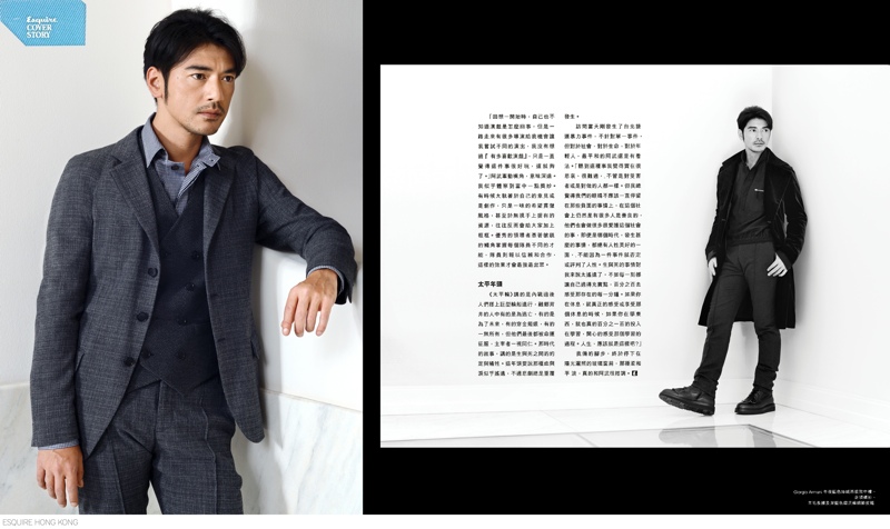 Takeshi Kaneshiro for Esquire Hong Kong-Known for his roles in ‘Chungking Express’ and ‘House of Flying Daggers’, actor Takeshi Kaneshiro covers the August 2014 issue of Esquire Hong Kong. Photographed by Frederic Aranda at the Four Seasons Gresham Palace in Budapest, the half Japanese, half Taiwanese actor is at ease in luxe fall looks. A regular face of Italian fashion house Giorgio Armani, it is no surprise that the actor dons elegant ensembles from the brand. / Grooming by Hirokazu Niwa.