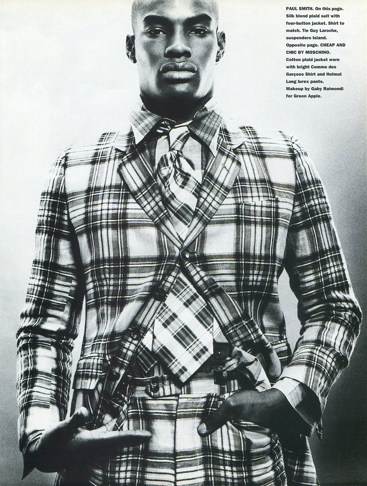 Tartan Flash-In 1994, tartan was all the rage and top model Tyson Beckford delivered the timeless trend for a fashion spread in Mondo Uomo It. Wearing suits, outerwear and more from labels that included Gianni Versace, Paul Smith, Cheap and Chic by Moschino, Beckford was photographed by Michelangelo Di Battista.