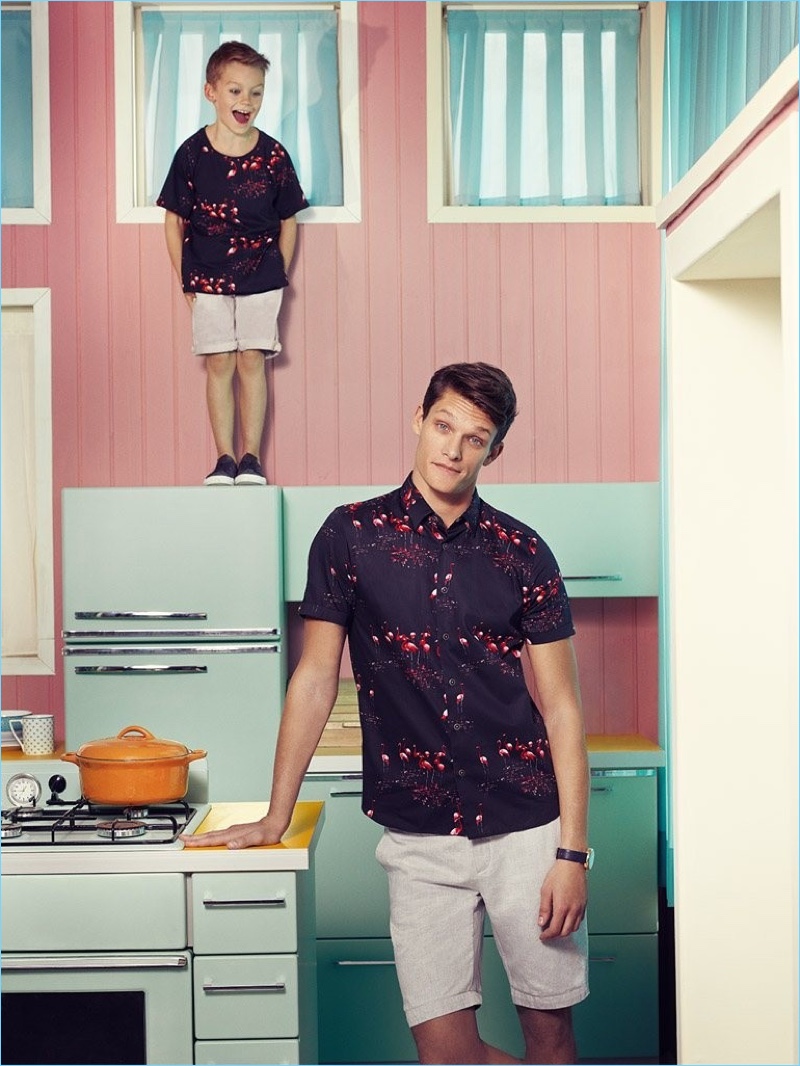 Ted Baker goes retro with a sitcom-inspired spring-summer 2017 campaign. The fashion brand taps Danny Beauchamp as Mr. Baker. The British model pours on the charm as he sports Ted Baker’s latest arrivals. Enjoying domestic bliss, Danny trims his hedges, vacuums his carpet, and takes a trip to the grocery store. Embracing Ted Baker’s quintessential British style, Danny wears everything from casual knitwear and sharp suiting to summer-ready swim shorts.