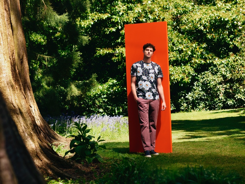 Ted Baker creates a studio outdoors for a gorgeous fall-winter 2019 shoot. The fashion brand enlists model Hannes Gobeyn to star in the outing. Brushing up on a sleek wardrobe of classic essentials, Hannes showcases varied pieces to tackle for the season. Tropical prints make a significant impact with relaxed tees and short-sleeve shirts. Meanwhile, the likes of slim-fit trousers and the timeless polo ground the selection. Bringing the looks full-circle, Hannes dons slip-on sneakers and takes hold of several leather bags by Ted Baker.