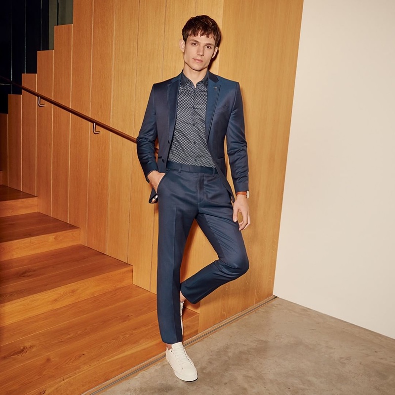 Ted Baker unveils its party shop just in time for the holiday season. Providing endless inspiration, the brand takes us from thoughts of Thanksgiving dinner to glamorous New Year Eve festivities. Model Adrian Sotiris steps in as muse for the occasion. He dons various pieces that are sure to turn a head or two, no matter the venue. Prints are front and center for Ted Baker’s holiday attire. Shirts go graphic with must-haves like the label’s Glacee geo print top. If you naturally gravitate towards prints, Ted Baker also applies a paisley pattern to its dapper velvet jacket in dark blue.