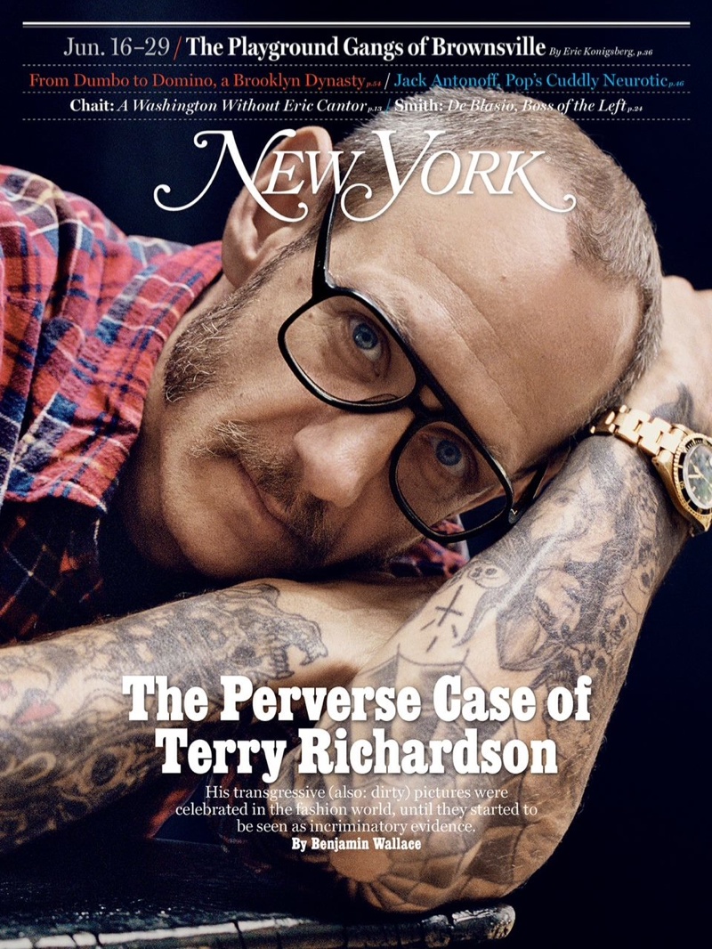 The Perverse Case of Terry Richardson–New York Magazine features photographer Terry Richardson on its latest cover. Richardson poses for an unassuming series of photos by Cass Bird. In the accompanying article, the magazine gets to the heart of the controversy that surrounds Richardson, posing the questions: ‘Is Terry Richardson an Artist or a Predator?’ Addressing controversial work of a sexual nature, Richardson explained that it’s always consensual, “It was always assistants, or other people around, or girls brought friends over to hang out. When I was taking those pictures..I was very, like, ‘Cool, sounds great, let’s do it, great, okay, sure, great, cool, if not, no problem, never do anything you don’t want to do, of course, I totally respect that.” However, the article weighs in on power dynamics. Seeing that Richardson is a top photographer that can guarantee a model work, are they really in a position to say no? An anonymous photography agent shares, “These girls are told by agents how important he is, and then they show up and it’s a bait and switch. This guy and his friends are literally like, ‘Grab my boner.’ Is this girl going to say no? And go back to the village?” Read more from the feature at NyMag.com.