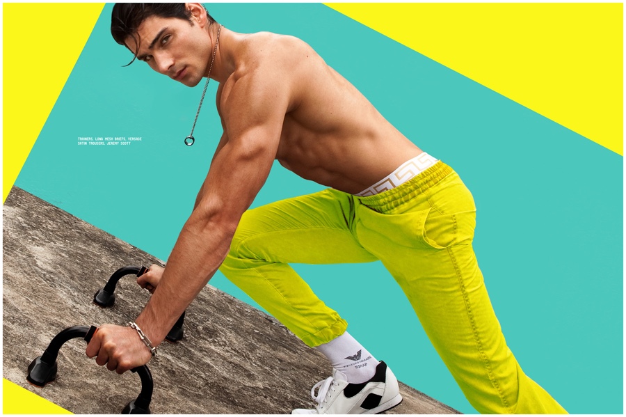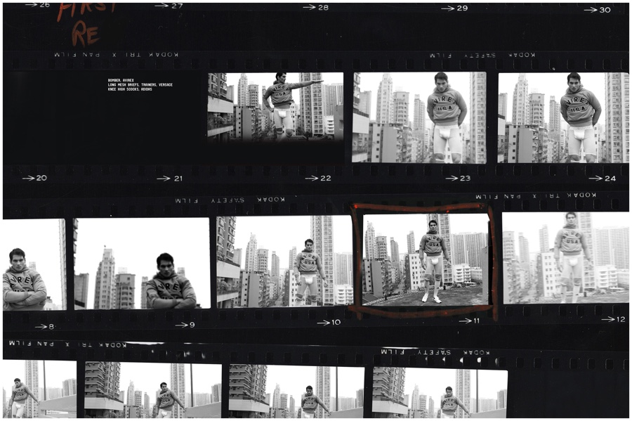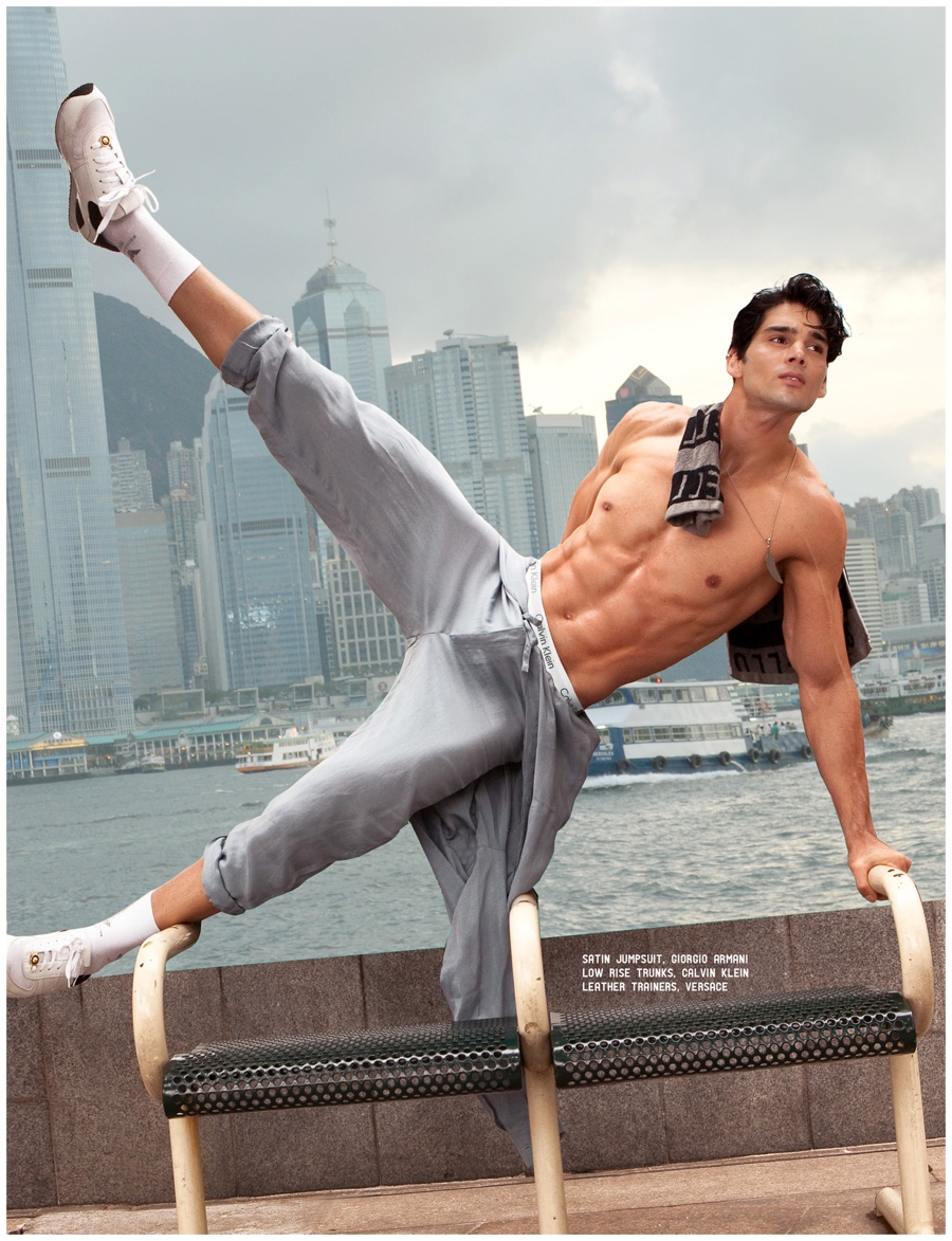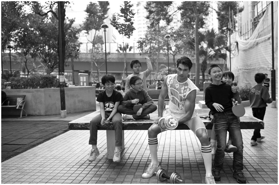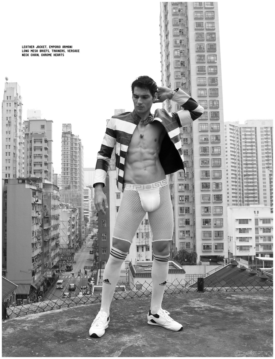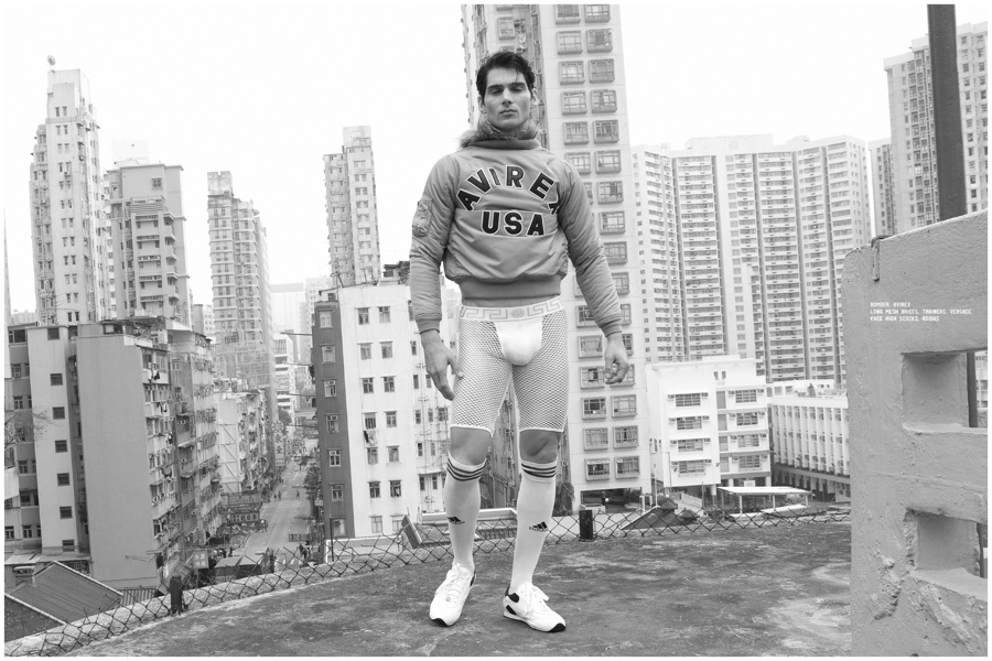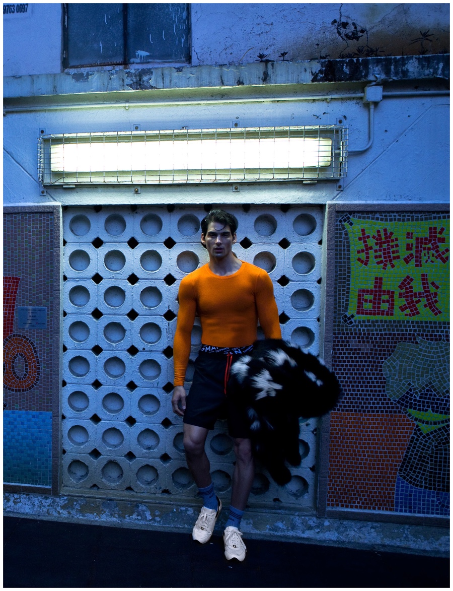 Photographer Baldovino Barani and stylist Cheryl Leung link up for a campy homage to the 1990s with a new story featuring model Taner Sigirtmac (ModelOne HK). Model muse for the day, Taner is captured on location in Kowloon, Hong Kong as he shows off his muscles in sporty fashions from Jeremy Scott, Emporio Armani, Calvin Klein and more. / Grooming by Karen Yiu.