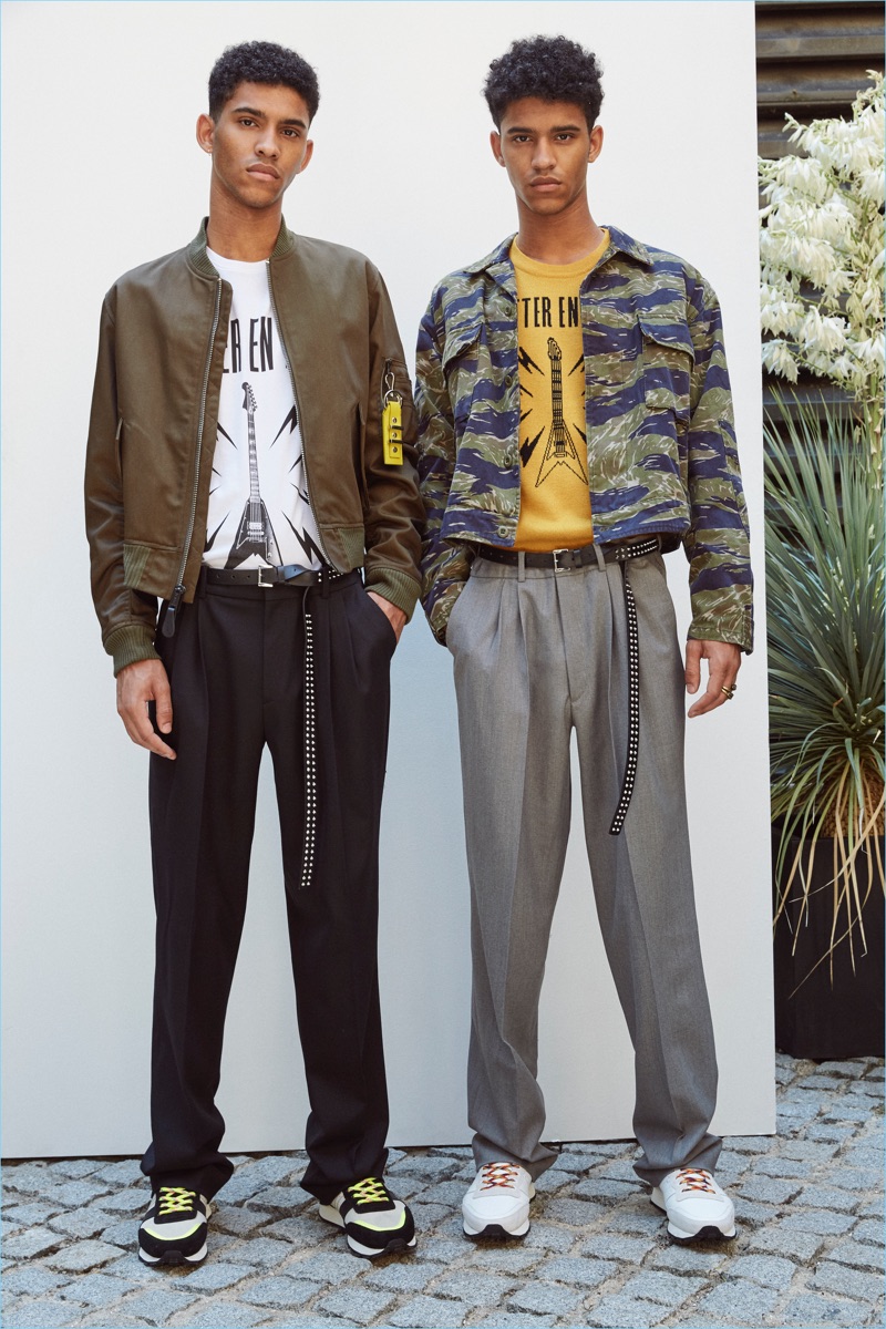 French fashion brand The Kooples finds new inspiration in the filmography of Jim Jarmusch. Creative director Alexandre Elicha takes The Kooples man into the future, turning the label’s logo upside-down. The cheeky detail marks the collection’s key pieces, which range from the windbreaker to simple tees. Embracing a casual flair for spring-summer 2018, the brand’s range includes a mix of printed short-sleeve shirts, lightweight bomber jackets, denim jeans, and graphic tees. However, The Kooples man still enjoys his tailoring with sharp trousers and suit jackets.
