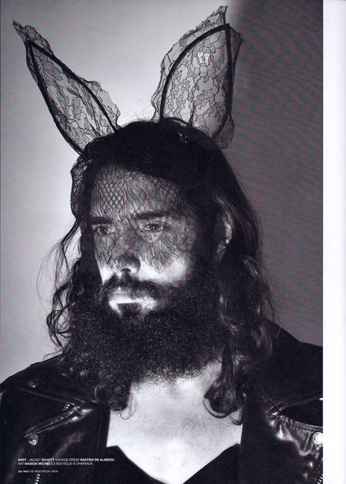 photographer bertrand le pluard is used to feature himself in his work … for wad‘s special fashion issue he teamed up with stylist stéphane gaboué for a reinterpretation of the little black dress where keywords are beards, lace, rock, religious, biker, medieval …