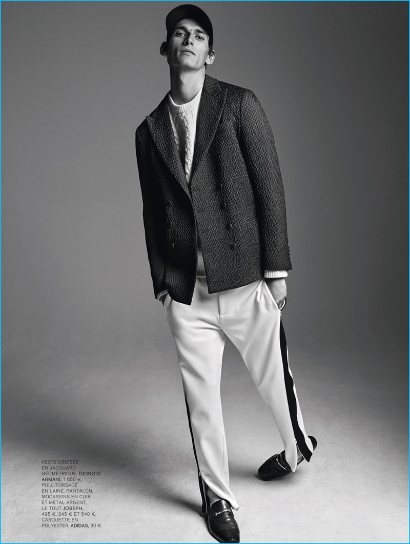 PinModel Thibaud Charon appears in a fashion editorial for L’Express Styles.