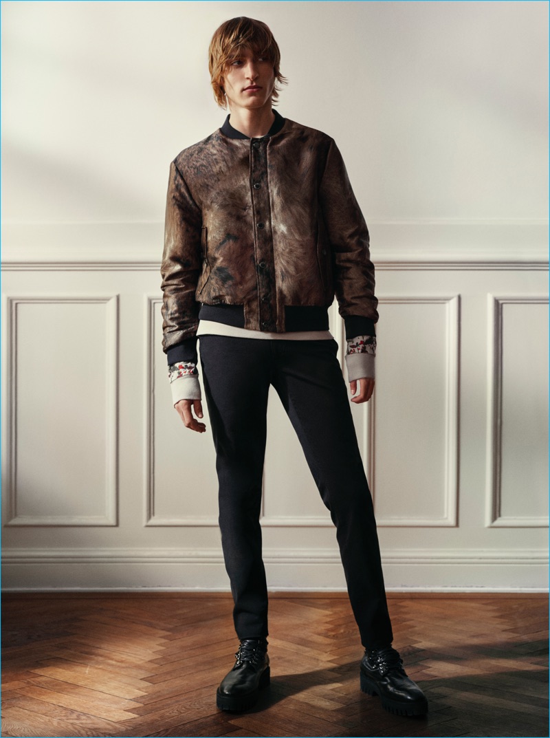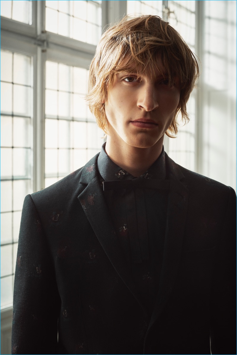 Highlighting Tiger of Sweden’s stylish strengths, Tim is pictured in double-breasted jackets, pinstripe suiting, and eveningwear. Dusty hues and soft prints lend a sophisticated quality to the label’s latest wears. On a more casual note, trendy pieces such as the bomber jacket and shearling outerwear are explored with a luxe point of reference.