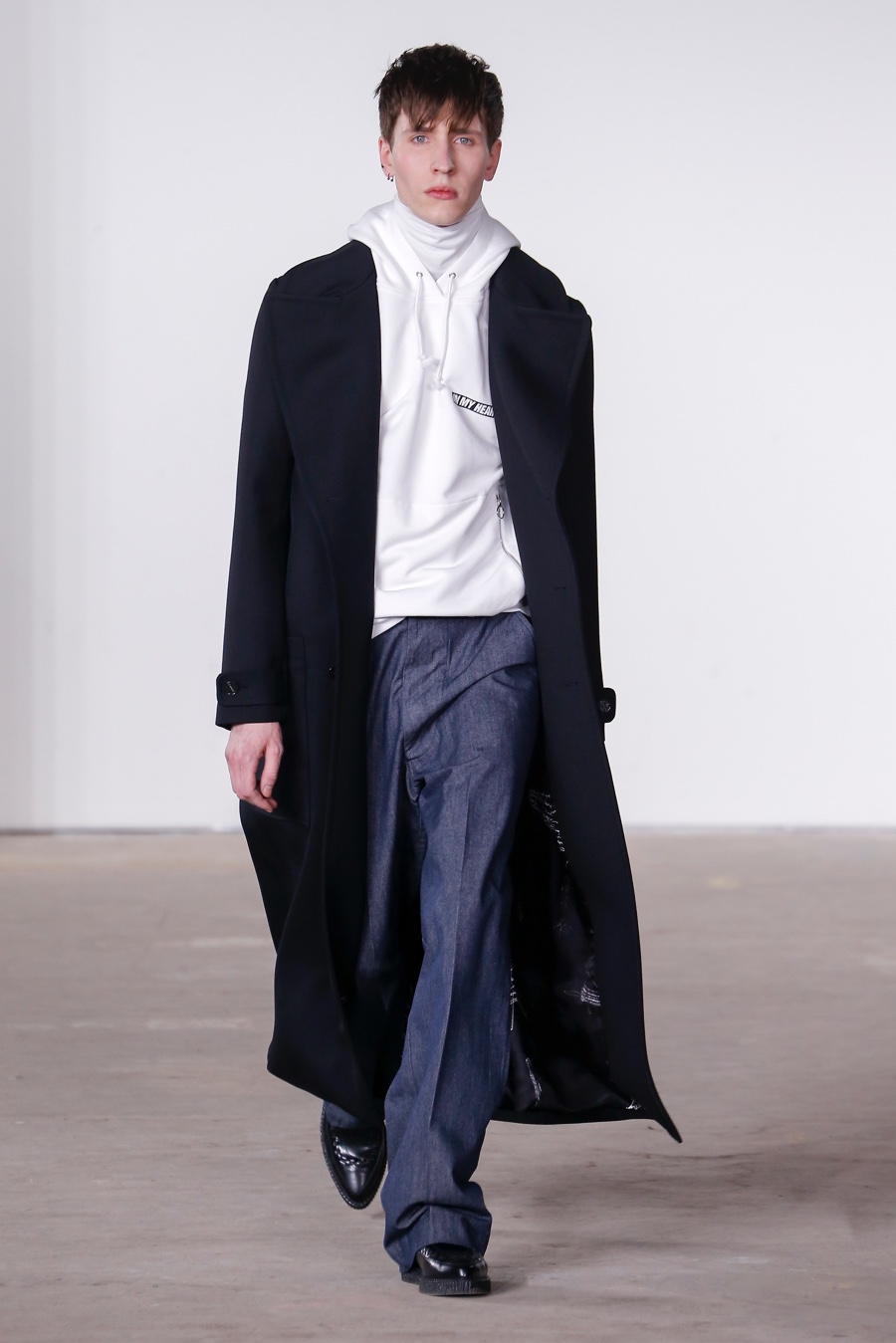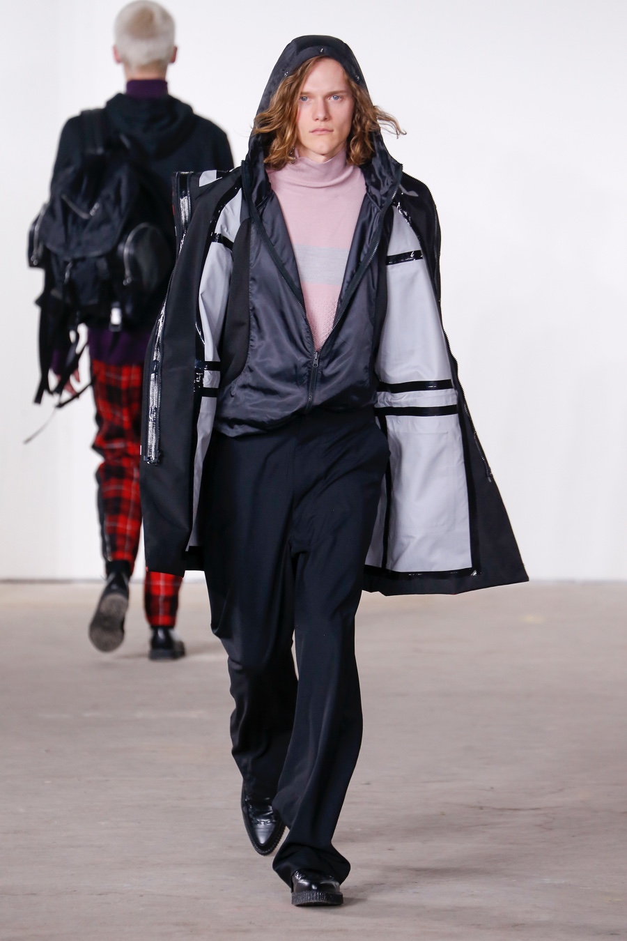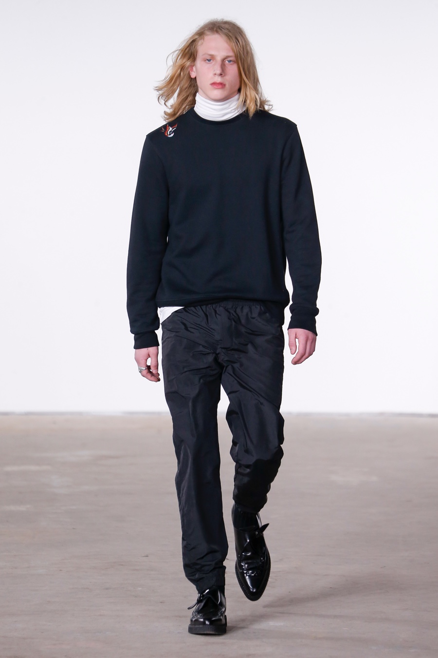 Unveiling his fall-winter 2016 men’s collection during New York Fashion Week: Men, Tim Coppens capitalized on a youthful attitude. Embracing an eclectic point of view as far as references go, Coppens filtered his modern spin on streetwear through varied references that included military style and cultural icons.