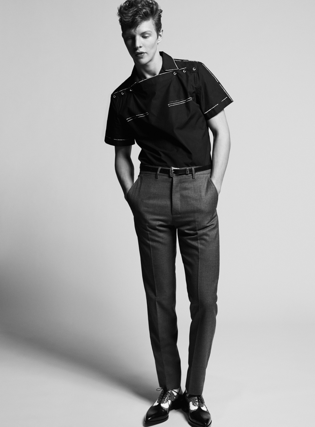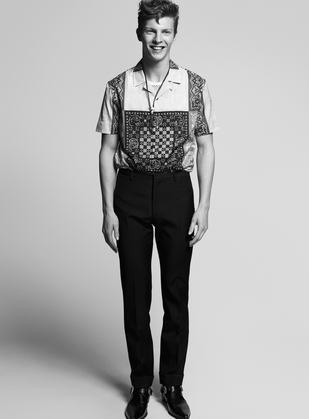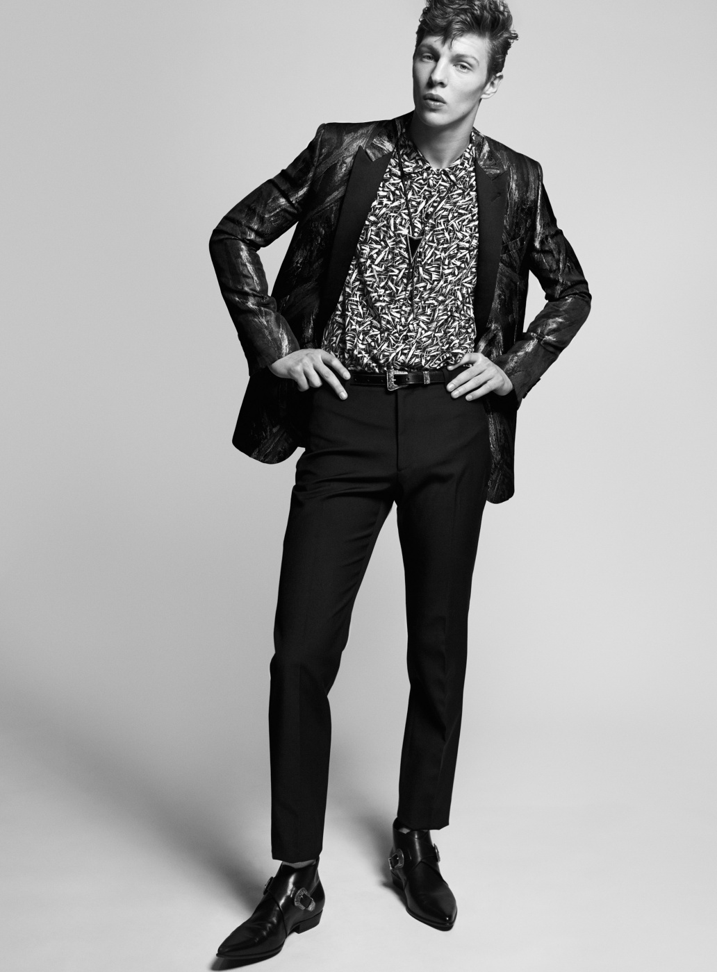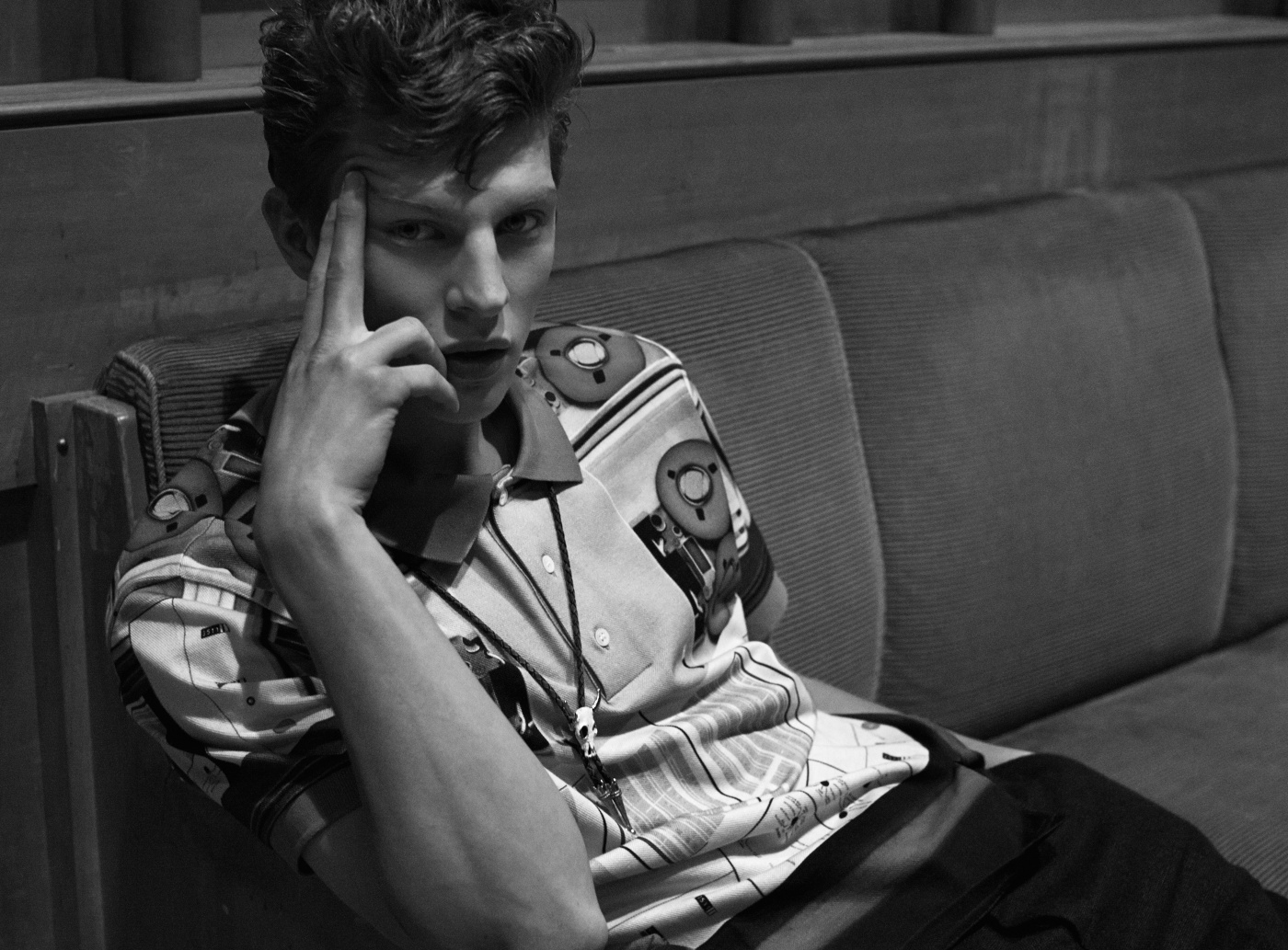 Retro Spin–Following a contemporary outing for HERO, model Tim Schuhmacher graces the pages of Sleek magazine with a story by photographer Stefan Zschernitz and stylist Isabelle Thiry. Embracing a 1950s-inspired attitude, Tim is styled impeccably, wearing printed shirts and lean trousers, featuring brands that include Kenzo, Prada and Bottega Veneta. / Grooming by Gregor Makris (Bigoudi).