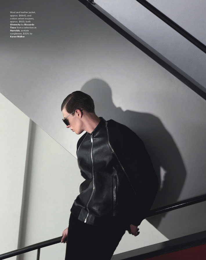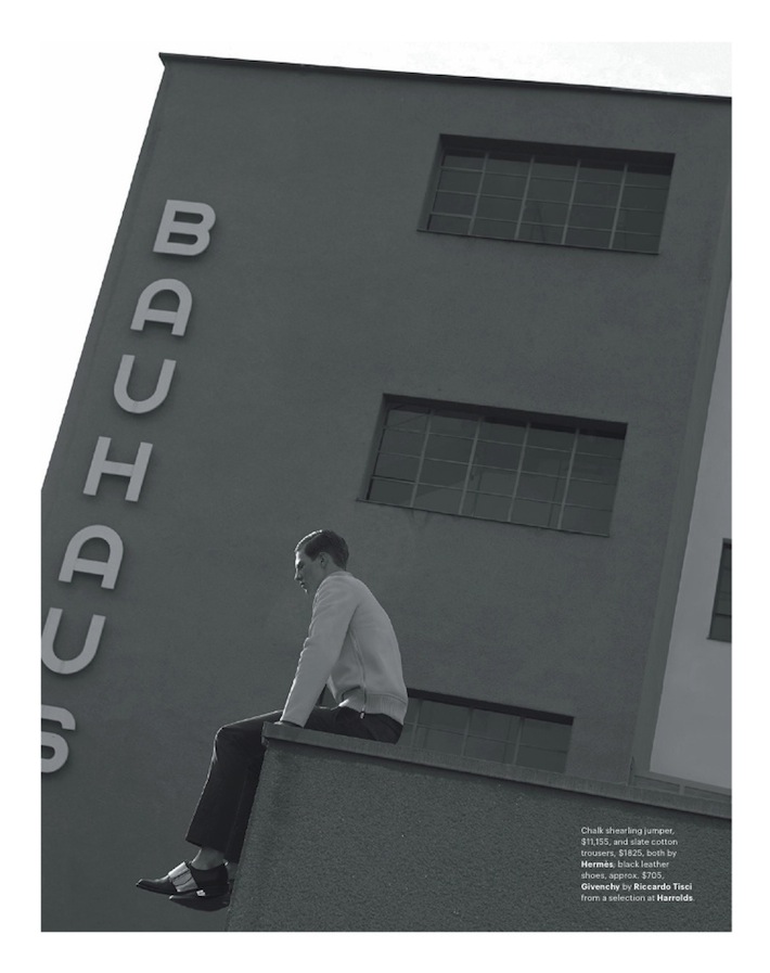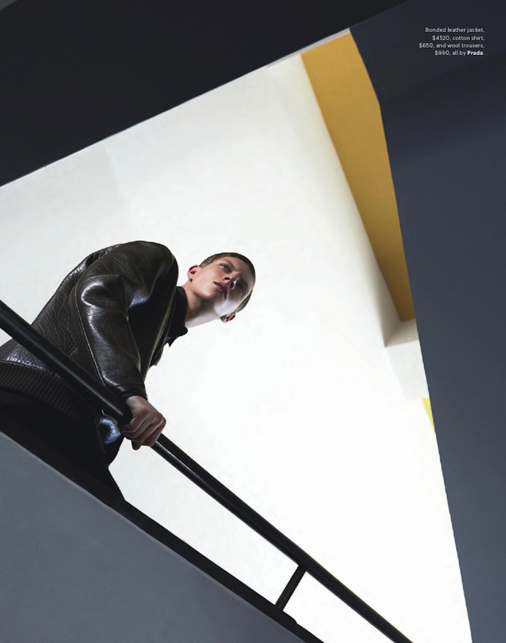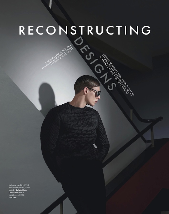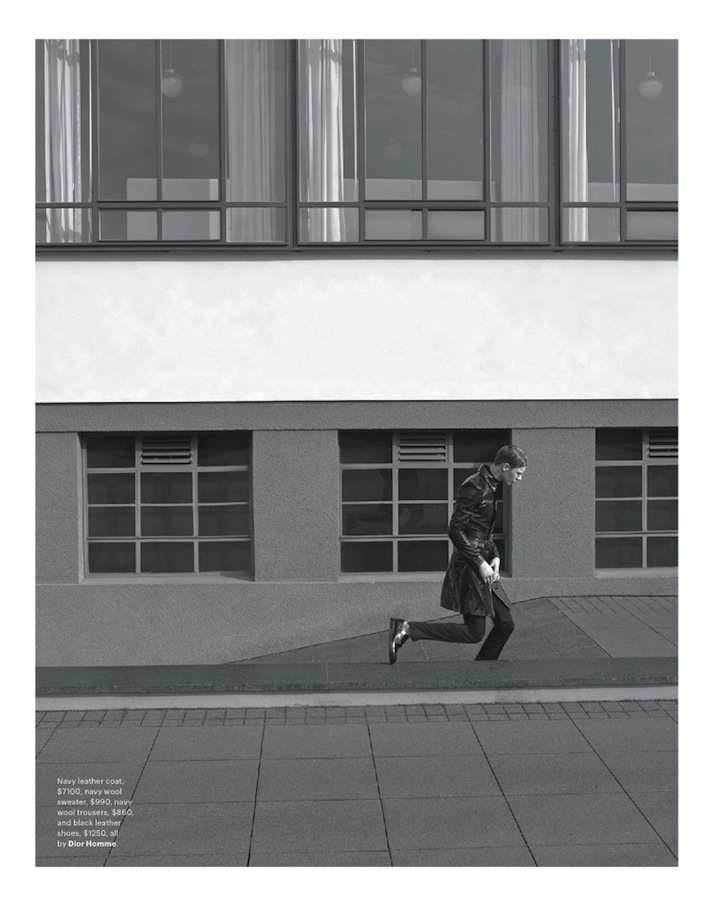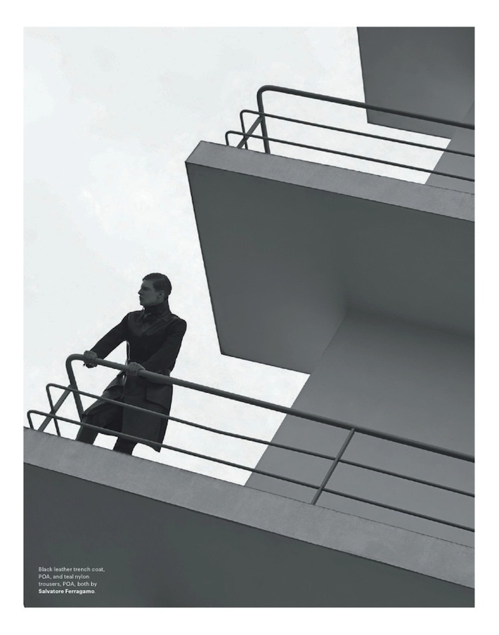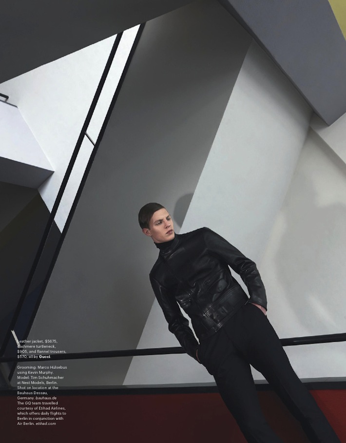 The Bauhaus Effect–Nest model Tim Schuhmacher stars in the latest issue of Australian GQ, wearing a selection of cutting edge designs selected by stylist Wayne Gross. Captured by Anuschka Blommers and Niels Schumm in the buildings of the famous Bauhaus school of arts and design in Germany, Tim wears modern sleek silhouettes, designed with innovative fabrics that combine luxury with an almost futuristic vibe. Dressed in pieces from the likes of Givenchy, Calvin Klein Collection, Emporio Armani and many more, Tim is a lonely presence in the buildings of one of the most influential architectural movements of the 20th century. / Grooming by Marco Hülsebus.