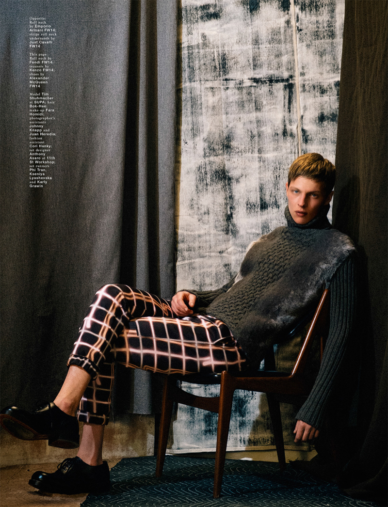 Vector–Blink and you may miss spring but that doesn’t stop British magazine Hero from getting a start on fall/winter 2014. For its spring/summer 2014 issue, the magazine taps model Tim Schuhmacher for a visually striking spread. Tackling a hodgepodge of fall fashions, stylist Karen Kaiser collaborates with photographer Robert Nethery for a story that features a range of labels, including Emporio Armani, Louis Vuitton and Balenciaga.