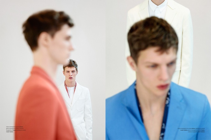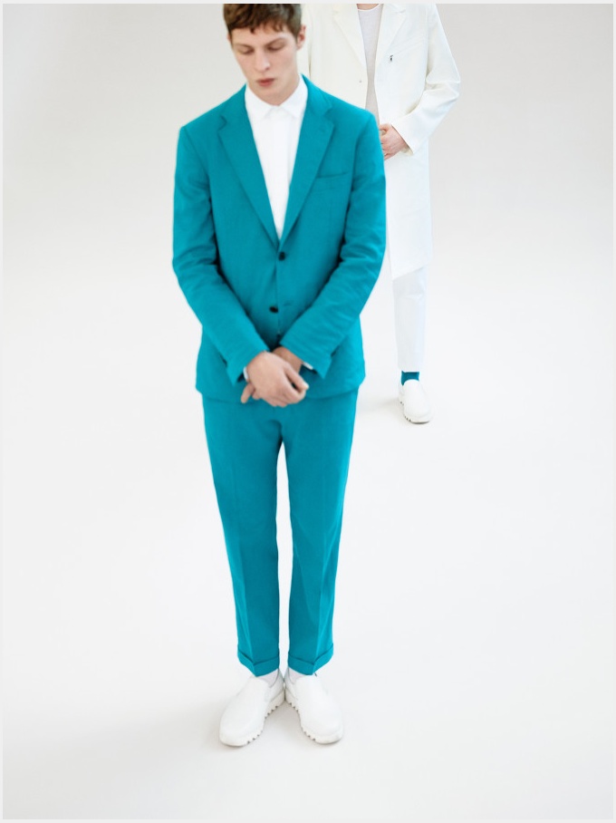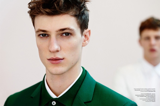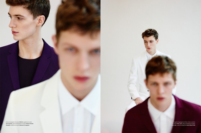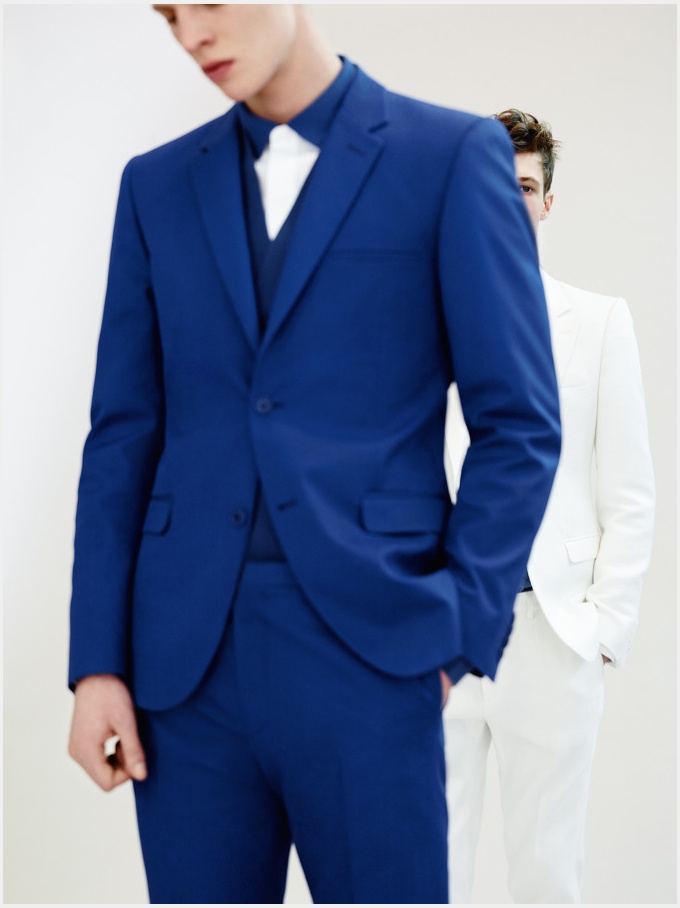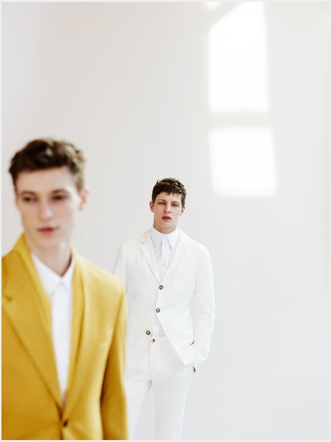 Spring Suits–Enlisted for a story in L’Officiel Hommes Italia, models Tim Schuhmacher and Tommaso de Benedictis are photographed by Laurence Ellis. Captured in a minimal space, the models sport colorful spring suits styled by Emil Rebek. From green and purple to yellow, vibrant hues paint a modern image of suiting that lends itself to occasions, both formal and casual.