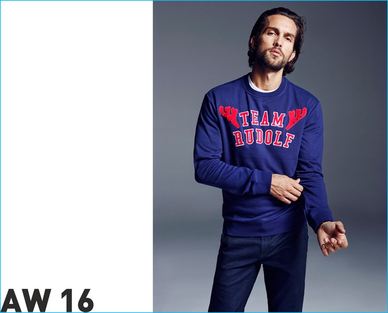 Reserved taps Tobias Sørensen for its winter 2016 lookbook. The Dutch model hits the studio in casual fashions for the season. The range embraces a modern cool with items such as a longline sweatshirt. Classic staples are also front and center with distressed denim joining the mix. Alongside streetwear-inspired styles, Reserved features holiday-inspired apparel. Standout pieces include a Rudolph sweatshirt and fair isle knit cardigan.